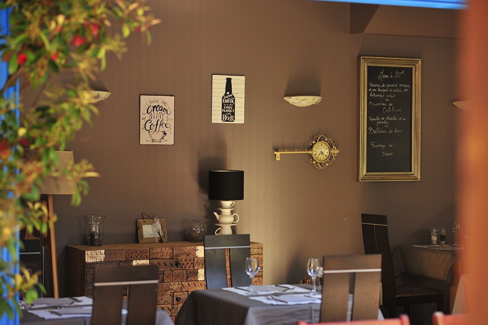 Restauration spécialités Bourguignonne, cuisine inventive, viande charolaise. Ambiance bouchon, bistrot. Produits du terroir et produits fermiers. Terrasse extérieure. Salle de réception intime pour 50 personnes.