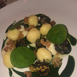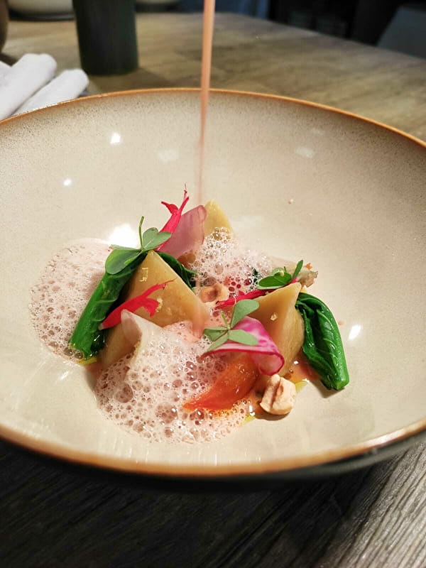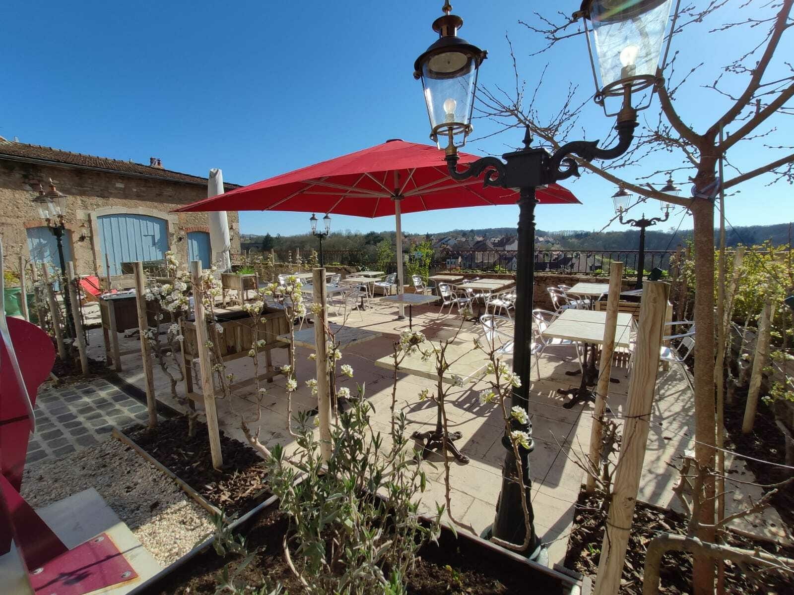 Dès qu'on passe le porche "wahouu", une superbe et élégante terrasse avec une vue imprenable sur le donjon de Semur. Moment de contemplation sur les fruits, légumes et herbes aromatiques qui encerclent la terrasse. Quant aux mets, très très raffinés… petite carte aux noms originaux qui donnent vraiment envie ! et en face, le nom de tous les producteurs très locaux qui alimentent nos assiettes !