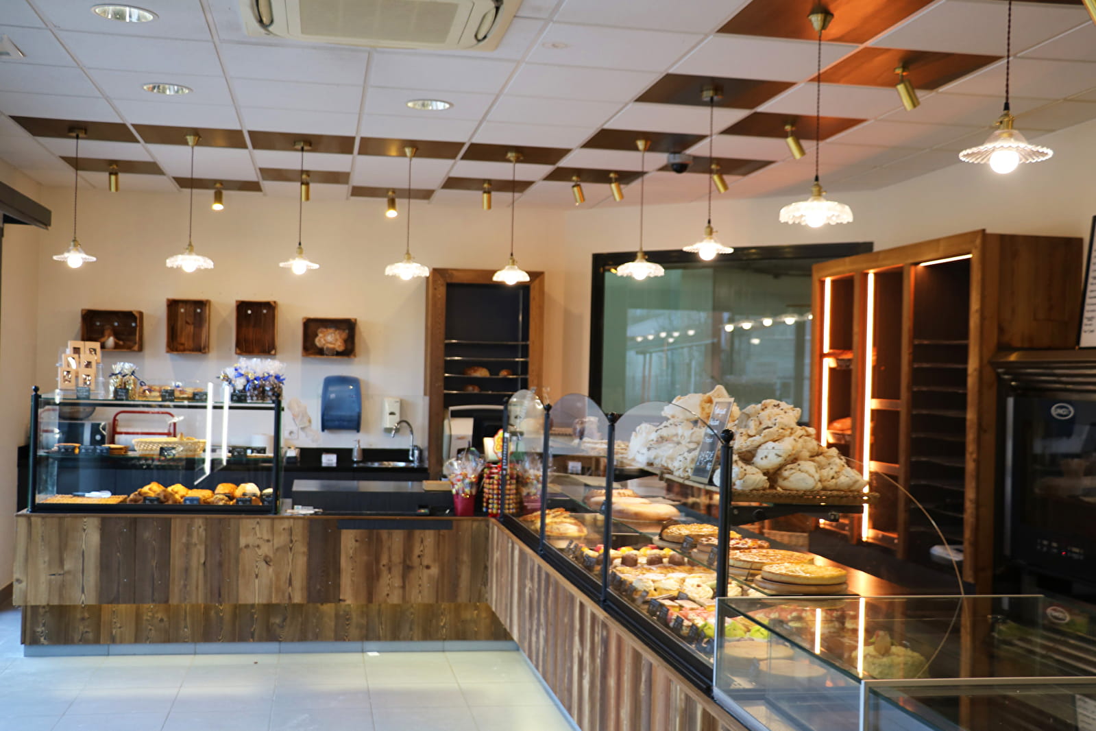 Boulangerie, pâtisserie, viennoiserie, snacking (sandwichs, pizzas, salades, quiches, plats chauds...), boissons, café, sur place ou à emporter. Jour de fermeture : dimanche.