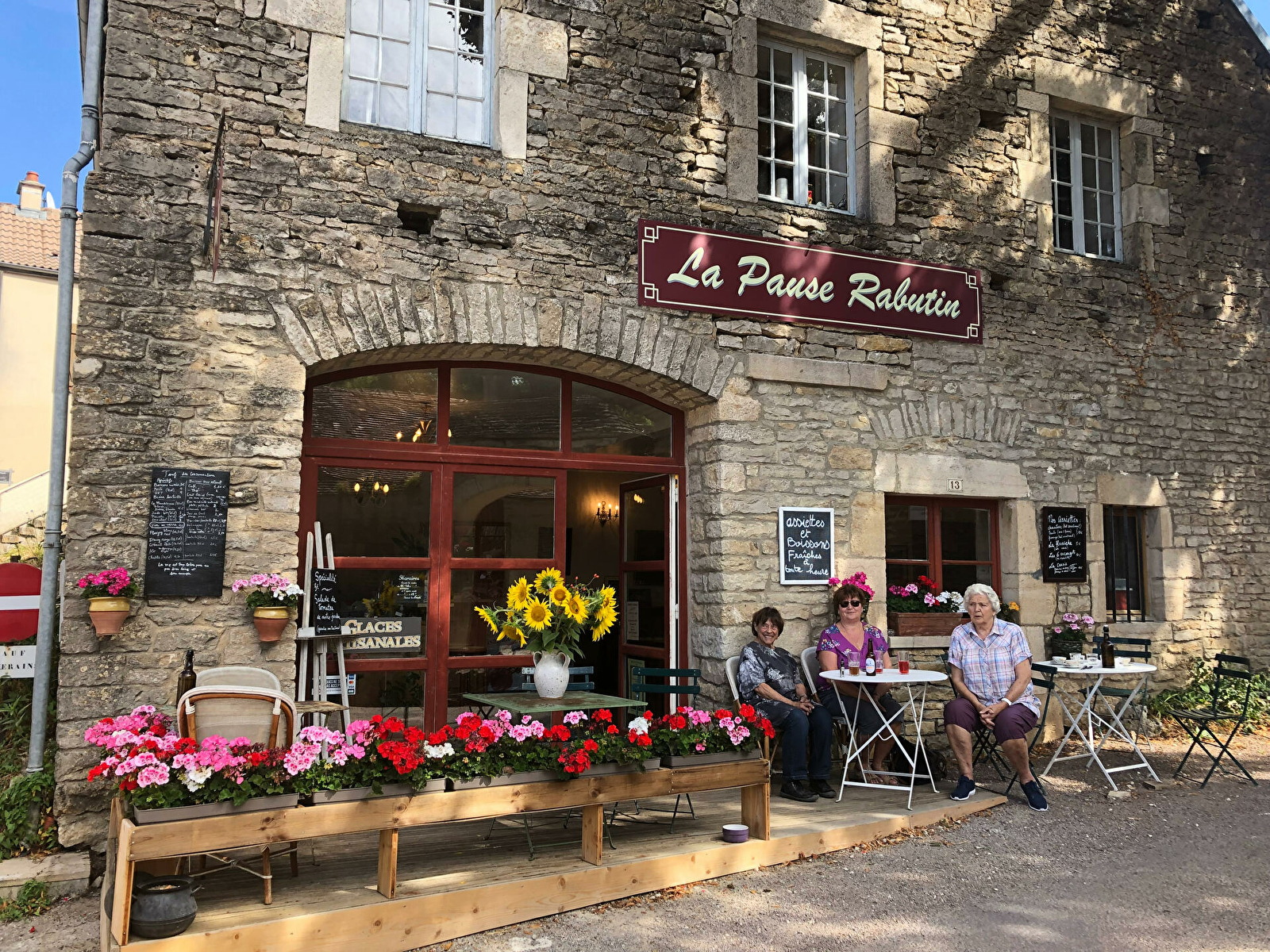 Petit café rénové avec goût en 2019 et joliment agencé en face de l'entrée du Château de Bussy-Rabutin. Faites une pause chez Jean-Jacques et Gabrielle pour une cuisine de saison et bio, les bons produits des artisans locaux et les vins de Bourgogne et alentour ! Spécialités de la maison : bœuf bourguignon, purée maison, l'andouillette, porc à la dijonnaise, escargots en croustille, poulet à la Madame Reine Geneviève Bourgogne (Gaston-Gérard), brandade de morue, hachis parmentier, tout est fait maison, desserts succulents (sans farine), glaces et sorbets d'un artisan glacier. Possibilité de commander un repas spécial en discutant avec le chef. Que vous déjeuniez en salle, en terrasse ou à l'abri sous la jolie pergola, en couple ou entre amis, vous passerez un moment délicieux.