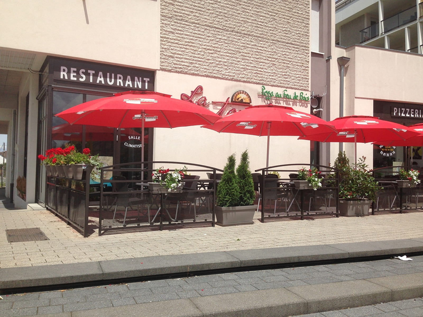 Restaurant pizzéria-grill, cuisine française et italienne. Cuisson des pizzas au feu de bois. Menu du jour et menus groupes surplace ou à emporter. Salle climatisée, terrasse d’été.