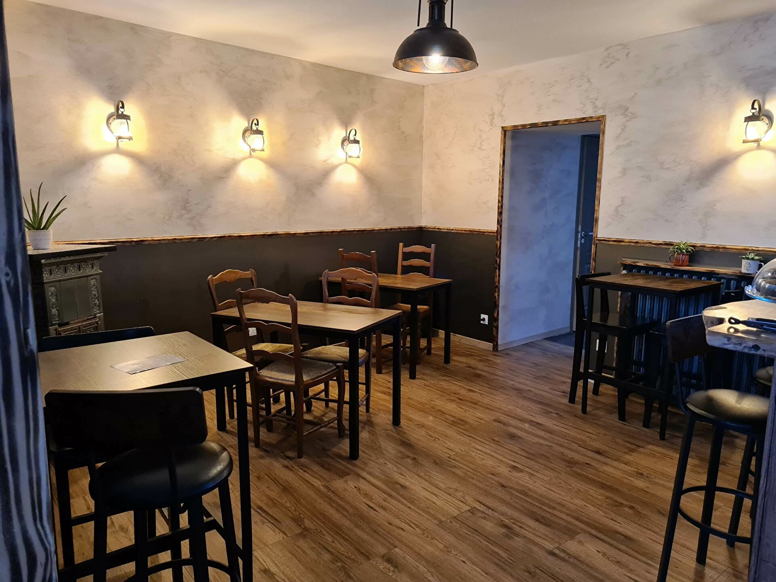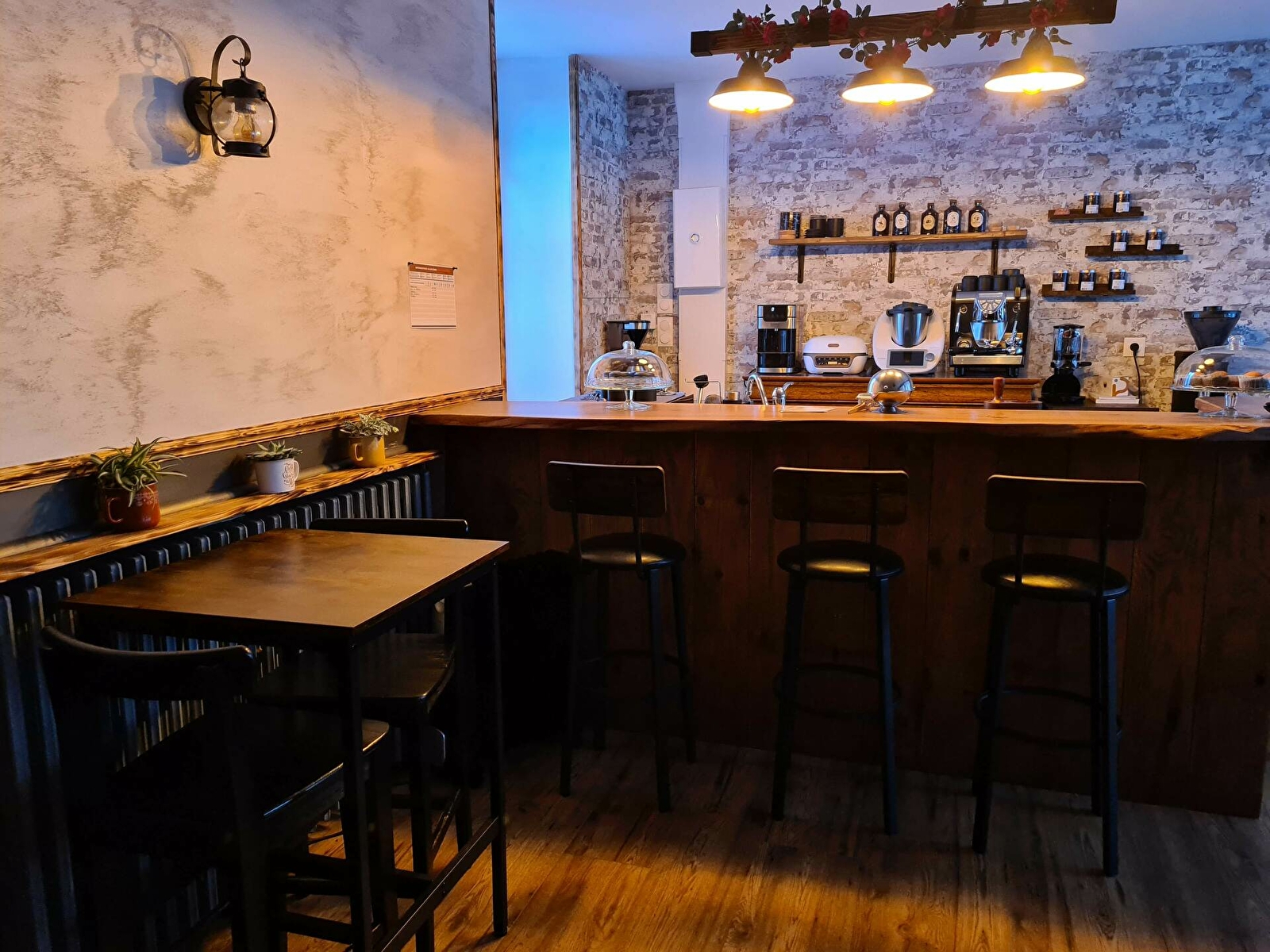 Décoration soignée, esprit vintage, lumière jaune apaisante et musique d'ambiance.