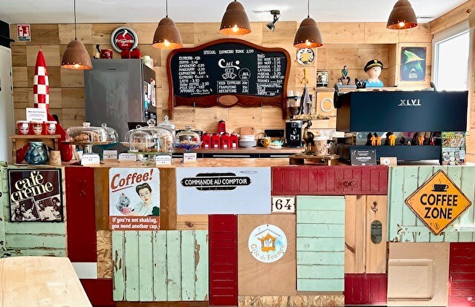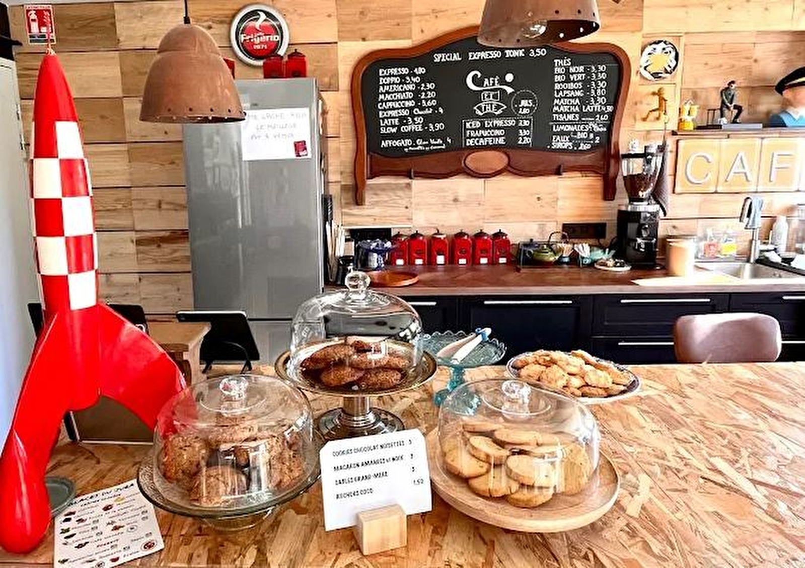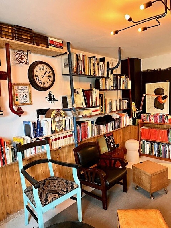 Salon de thé et café qui fait également galerie d'art et bibliothèque solidaire.
