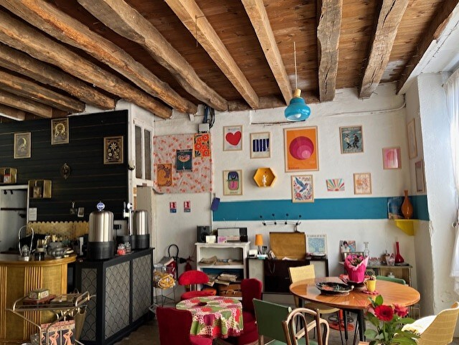 Un café brocante mêlant plusieurs ambiance où le client peut repartir avec une partie du décor.