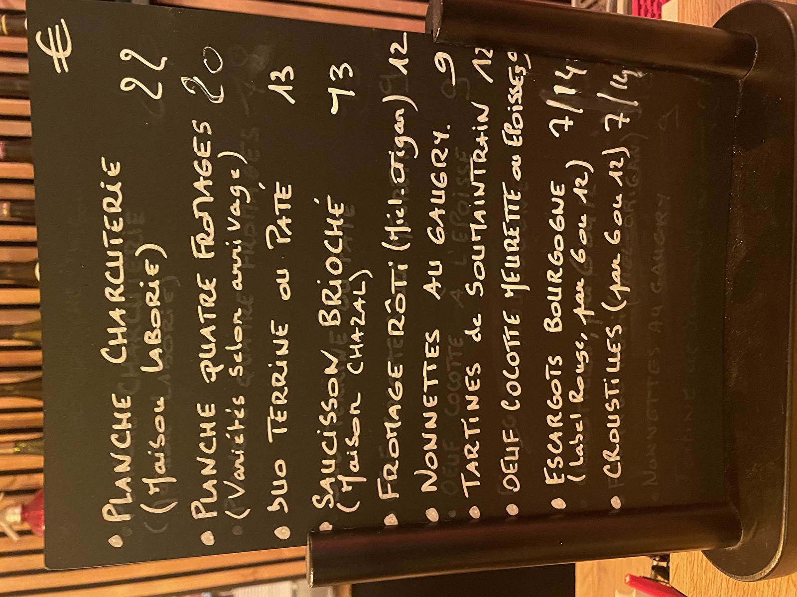 Outre les traditionnelles planches gourmandes, vous pourrez déguster un œuf cocotte Meurette ou à l'Époisses, un saucisson brioché, un fromage rôti, des escargots ou des croustilles et autres plaisirs locaux, sans oublier un mi-cuit chocolat ou une crème citron acidulée.