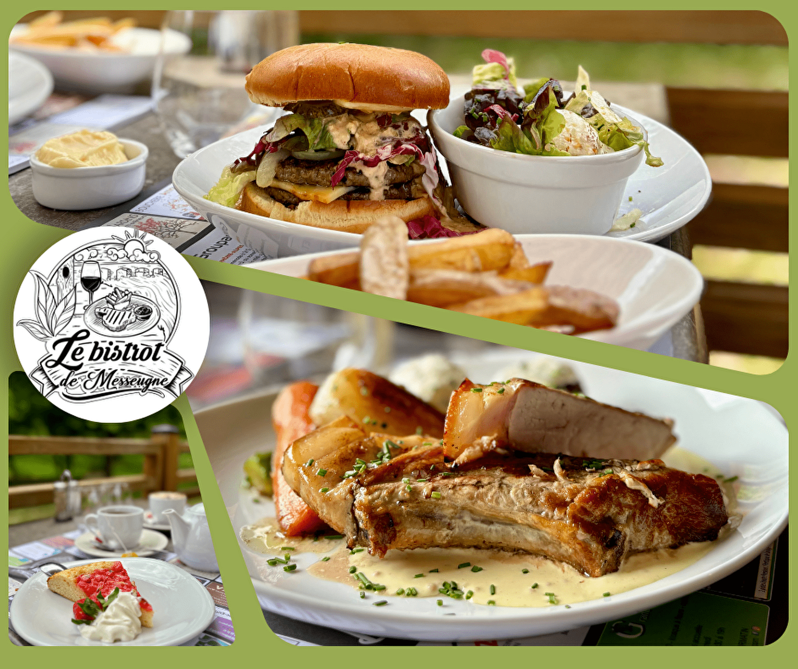 Découvrez le Bistrot de Messeugne, votre destination idéale pour déguster une cuisine maison française traditionnelle dans un cadre pittoresque à Savigny-sur-Grosne. Situé à proximité de Cluny et Chalon-sur-Saône, notre bistrot vous accueille dans une ambiance conviviale et chaleureuse, parfaite pour des repas en famille ou entre amis.