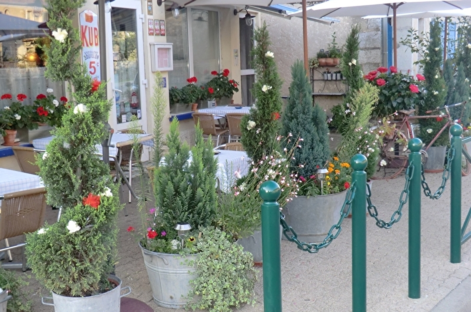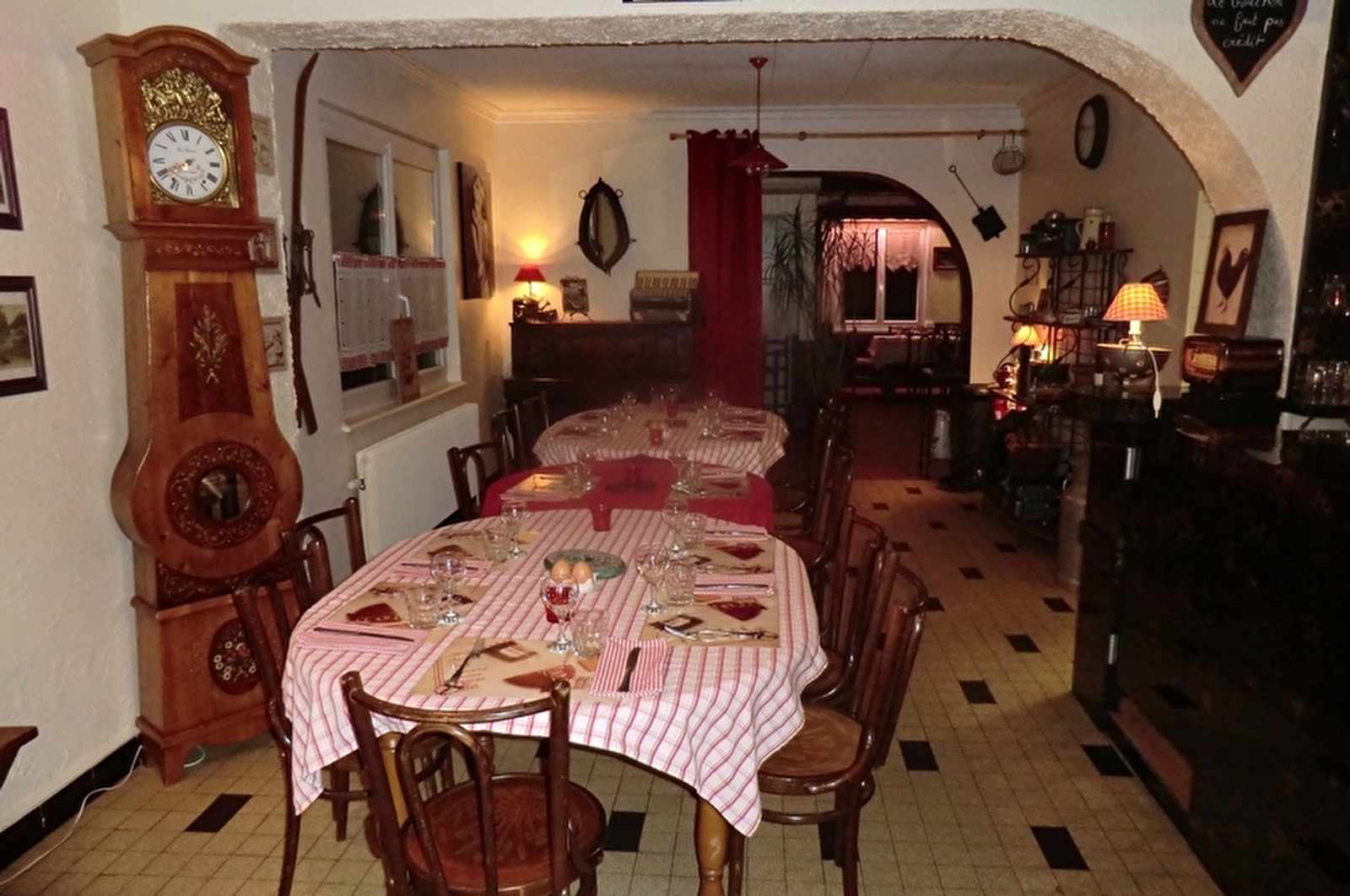 Dans un cadre rétro, Sissi et Jean-François vous proposent une cuisine à l'ancienne, mettant en avant les saveurs d'hier et d'aujourd'hui, telles que tête de veau, le coq au vin jaune et morilles, les croutes aux morilles les fondues au comté, fondues aux morilles et au vin jaune, les burguer comtois, le menu du jour en semaine, les poêlées maison, ainsi que les produits du terroir, les grenouilles en saison et la gougeonnette de truite en terrasse l'été. Chez Sissi et Jean-François Grundisch, on change d'époque en franchissant le seuil de la porte. Rouge à lèvres carmin et tenue de bistrot des années 1950, la patronne vous dirige entre les bibelots, plaques émaillées publicitaires et boîtes de fer blanc chinés. Vous arrivez à une table nappée en vichy et sièges de bois. Ici, l'origine lyonnaise est mêlée à la Franche-Comté. Le client se sent comme chez soi dans les petites salles où chaque détail amuse et provoque des anecdotes. Dans les assiettes, une cuisine de grand-mère revisitée, généreuse, qui fait la part belle aux produits locaux