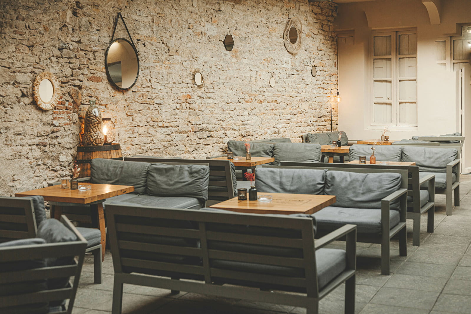 A l'intérieur, trois ambiances : la Salle avec ces fauteuils en cuir et son charme cosy; la Cour Intérieure, plus festive, espace fumeurs et accessible toute l'année et enfin notre salle à l'étage idéale pour des groupes ou des privatisations.