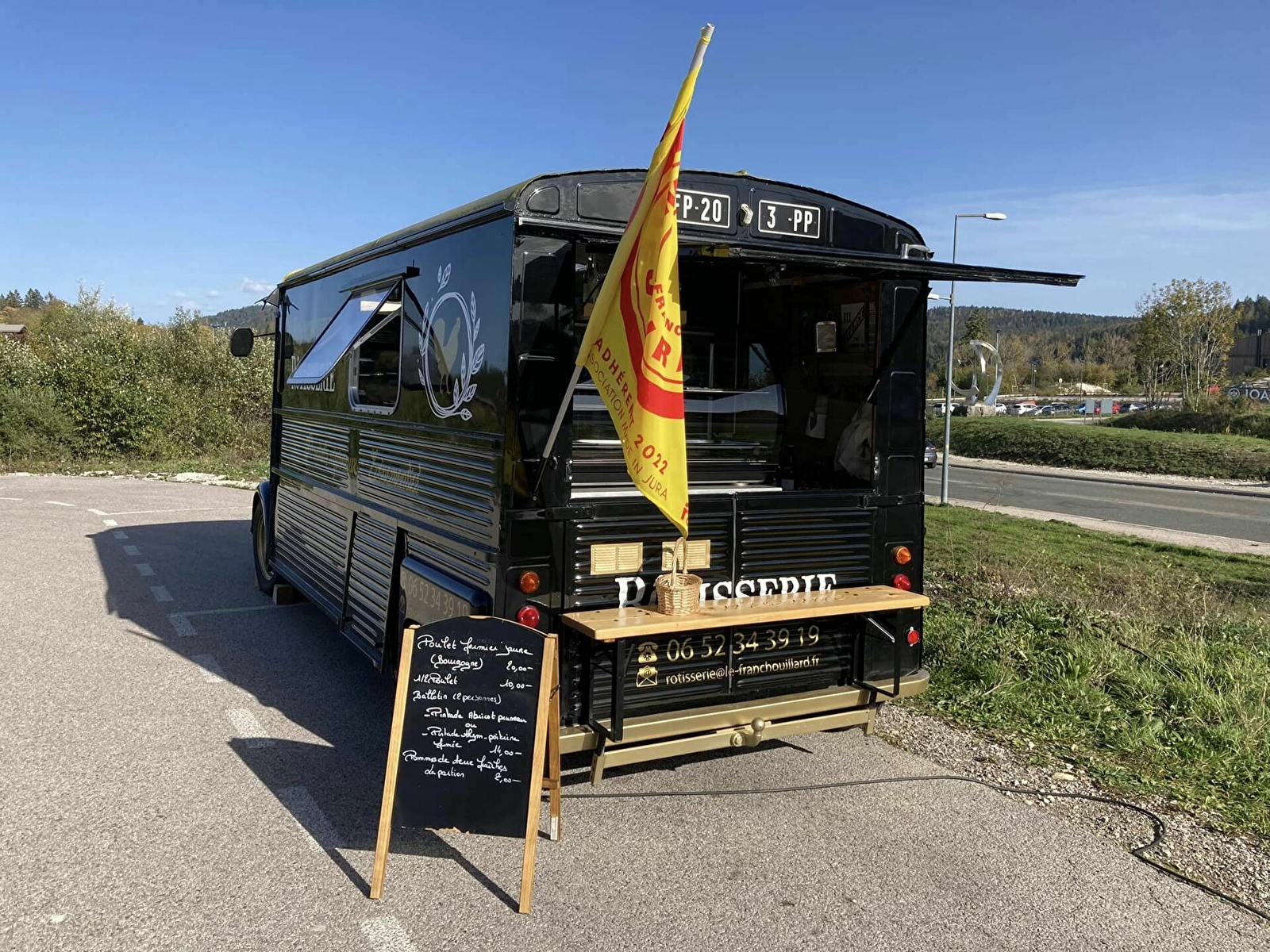 Le Franchouillard est une rôtisserie ambulante, vente de volailles de qualité fermière Label Rouge cuites sur place entièrement à la rôtisserie, prêtes à déguster. Le camion se place sur le parking de la boulangerie KSL à St Laurent en Gandvaux.
