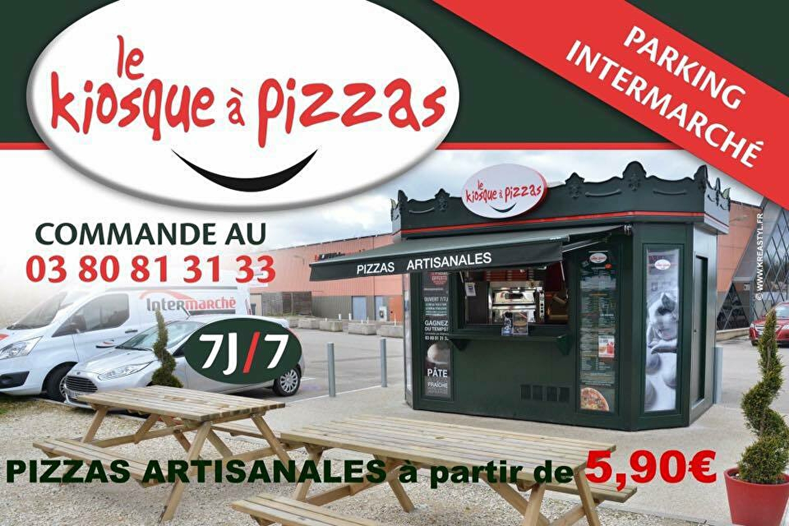 Idéalement situés sur le parking de l'Intermarché, nous sommes ouverts 7 jours /7 (sauf le dimanche midi).