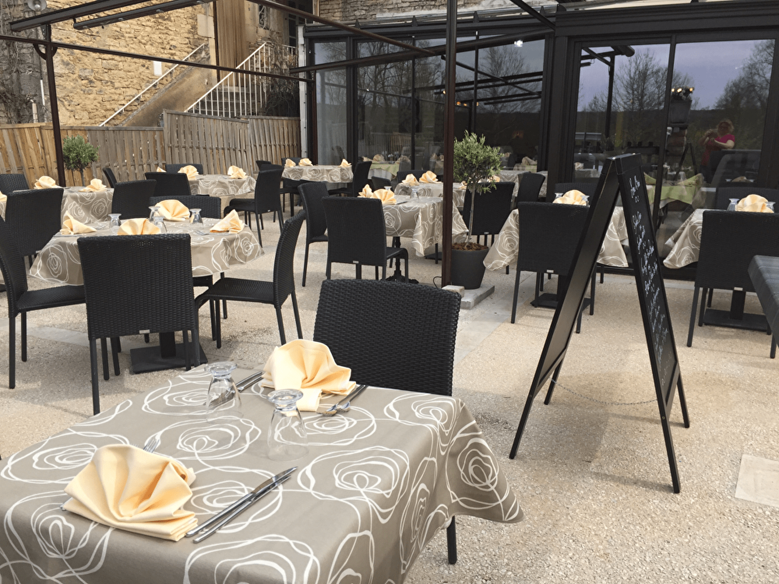 Très beau restaurant, face au canal de Bourgogne, tout à côté des Forges de Buffon, très fleuri, tout en pierres. Grande salle en pierres de taille, très beau mobilier, nappes blanches, grande véranda, sol en marbre rose. Petite salle moitié pierres de taille, moitié peinture, avec superbe bar. La terrasse fleurie est très agréable et ombragée. Menus du jour 14 €.