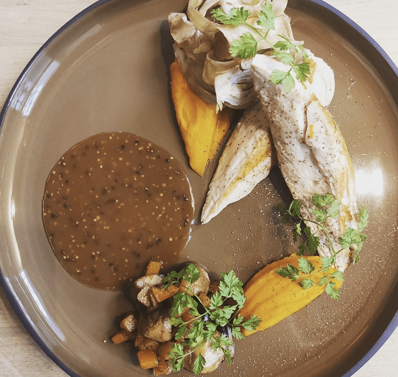 Une formule simple et concise changeant toutes les 6 semaines environ; une carte des vins fournie regroupant des pépites très abordables : le tout travaillé en collaboration avec le Chef et le Sommelier du Soufflot !