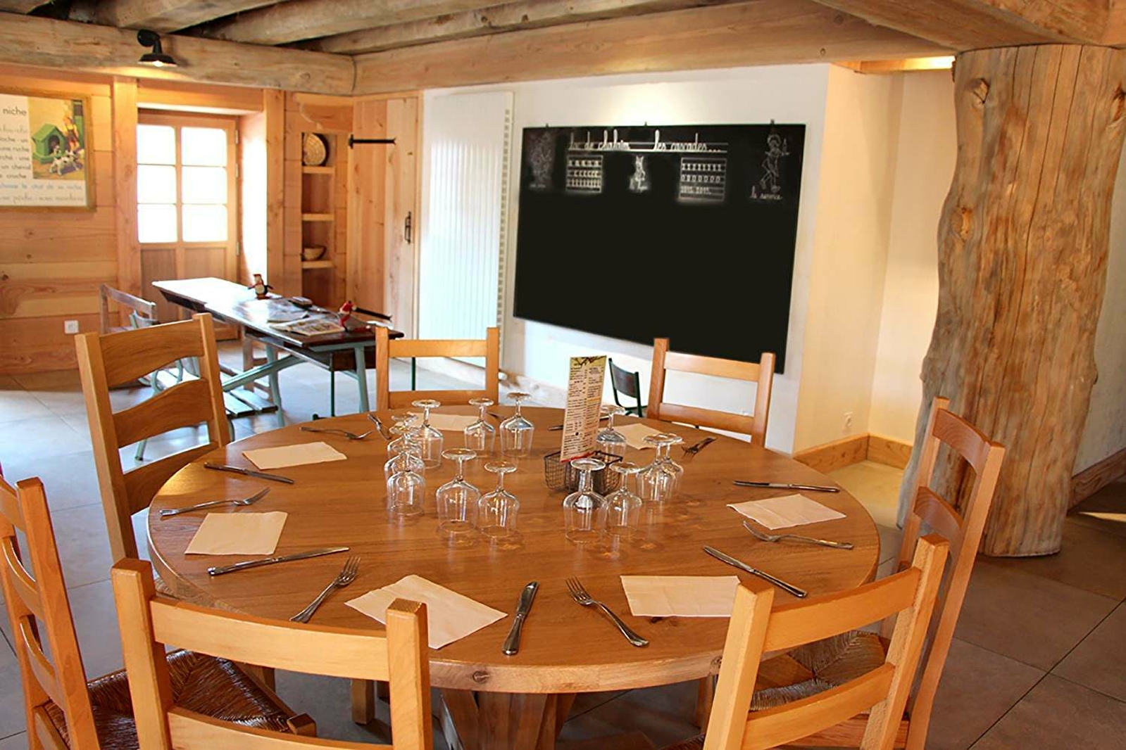 et pour les moments frisquets 4 salles de caractères avec cheminées, une salle espace enfants avec coin lecture et jeux, et dans la grande salle un tableau d'écolier et une bibliothèque enfants.