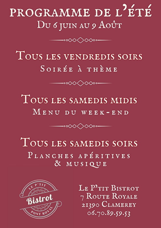 Tarifs :- Menu du jour : Tarif unique de 17.5€