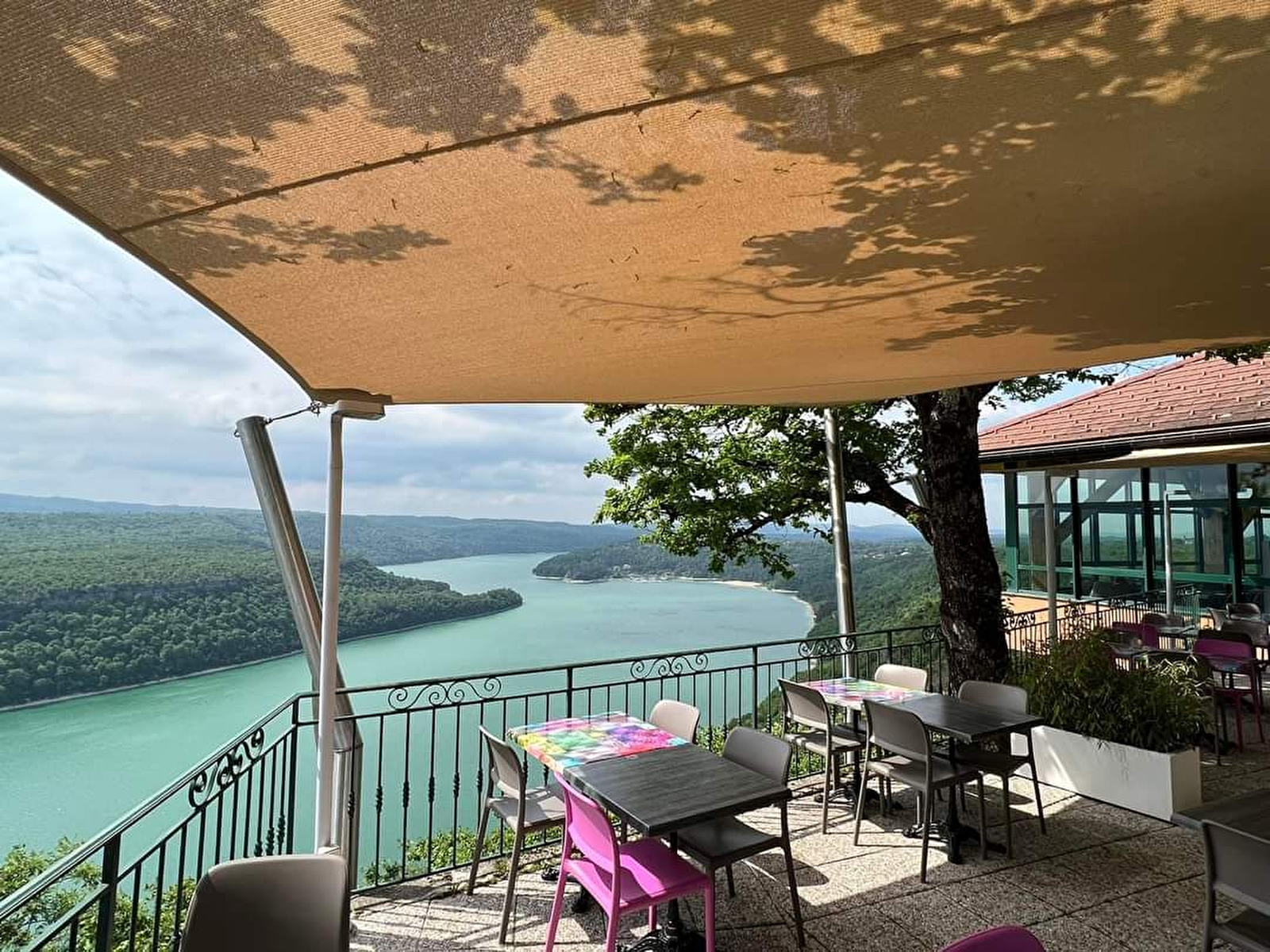 Niché au sommet d'une falaise, le restaurant Le Regardoir offre une vue imprenable sur les méandres du lac de Vouglans, l'une des plus grandes retenues d'eau de France. Situé au cœur du Parc Naturel du Haut Jura et de la Région des Lacs, l'établissement bénéficie d'un décor grandiose qui évolue au fil des saisons, offrant à ses visiteurs une parenthèse de sérénité et de contemplation.
