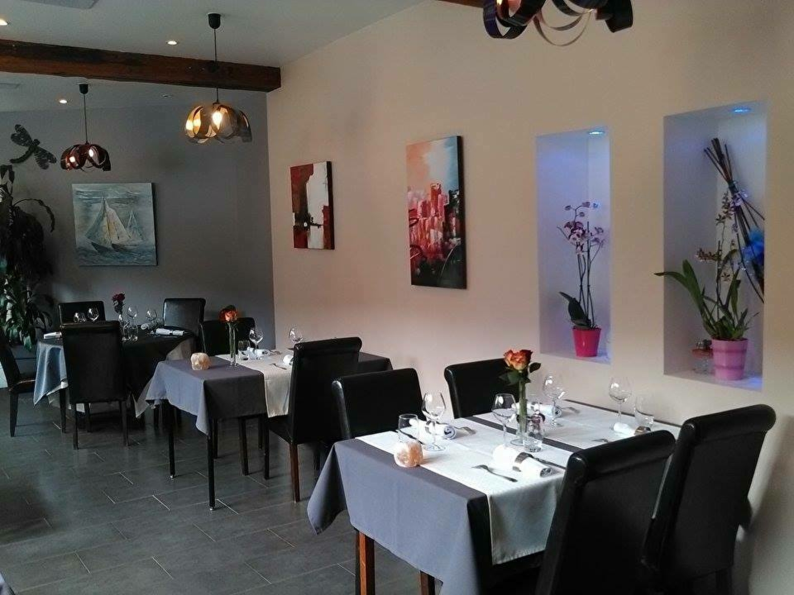 Nous vous accueillons dans un restaurant au style sobre avec une cuisine maîtrisée et faite maison à partir de produits frais, le tout joliment présenté.