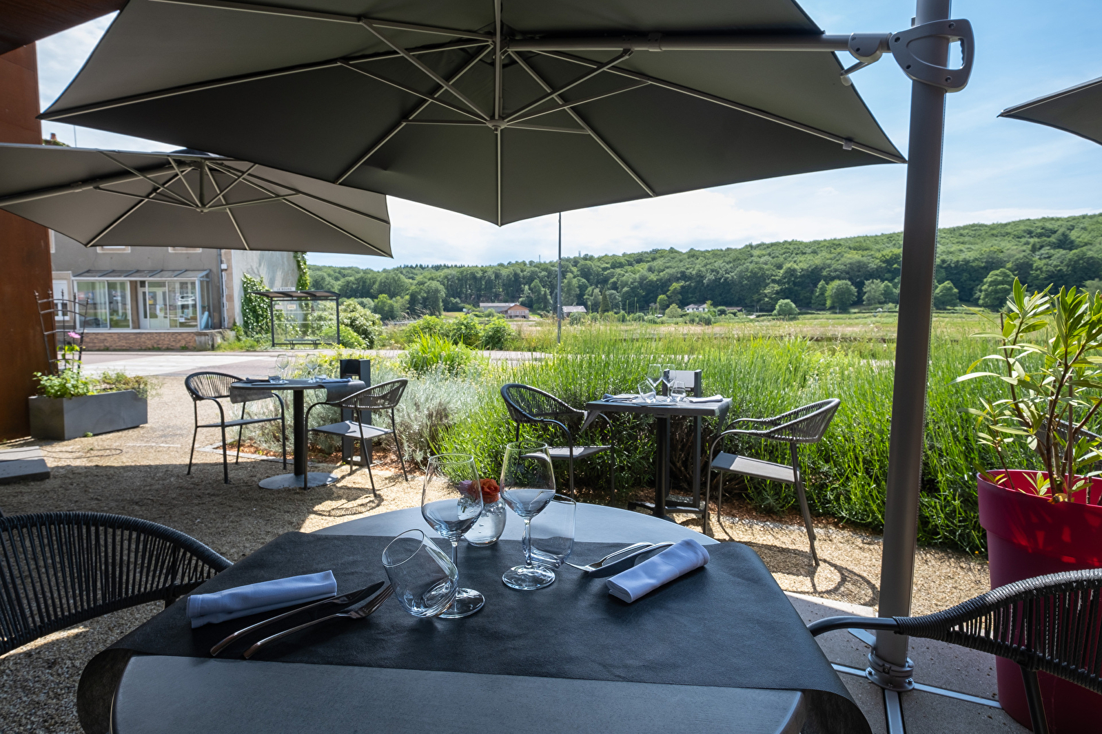 Au restaurant du château, le lieu est idéal en terrasse avec sa belle vue sur le lac. Le cadre est idyllique !