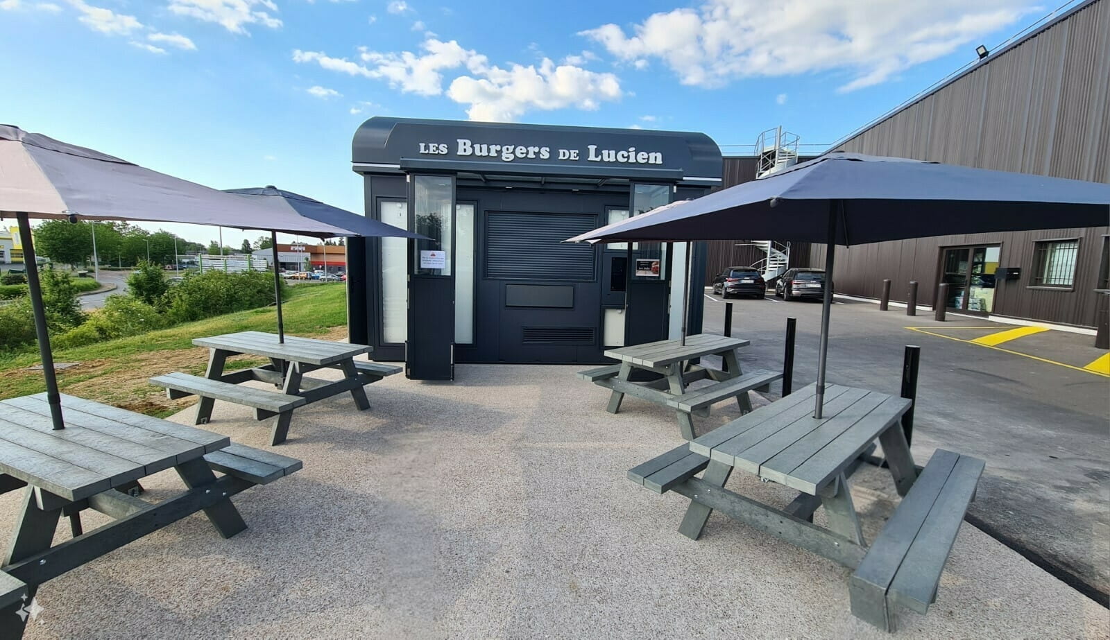 Chez Les Burgers de Lucien, vous trouverez une passion pour les produits locaux et un engagement envers la qualité. Nous sommes une entreprise familiale qui aime travailler avec les petits producteurs français. Notre pain, travaillé à la main par un boulanger local et toasté à la commande, s'associe à la perfection avec nos viandes françaises de race et nos galettes végétales conçues exclusivement pour nous par nos partenaires. Sans oublier nos fromages AOP qui garantissent authenticité et saveur. Les Burgers de Lucien, l'art de se régaler." Vous pouvez commander sur place, sur notre borne, au téléphone ainsi que sur notre site internet. Nous avons également quelques tables de disponibles devant notre kiosque.