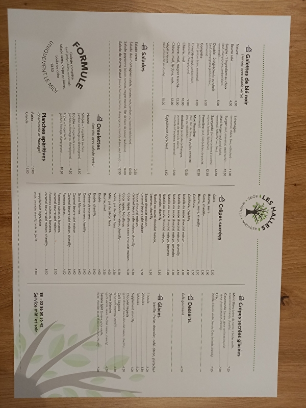 - A la carte : Compris entre 2.5€ et 8€ (Crêpes sucrées)