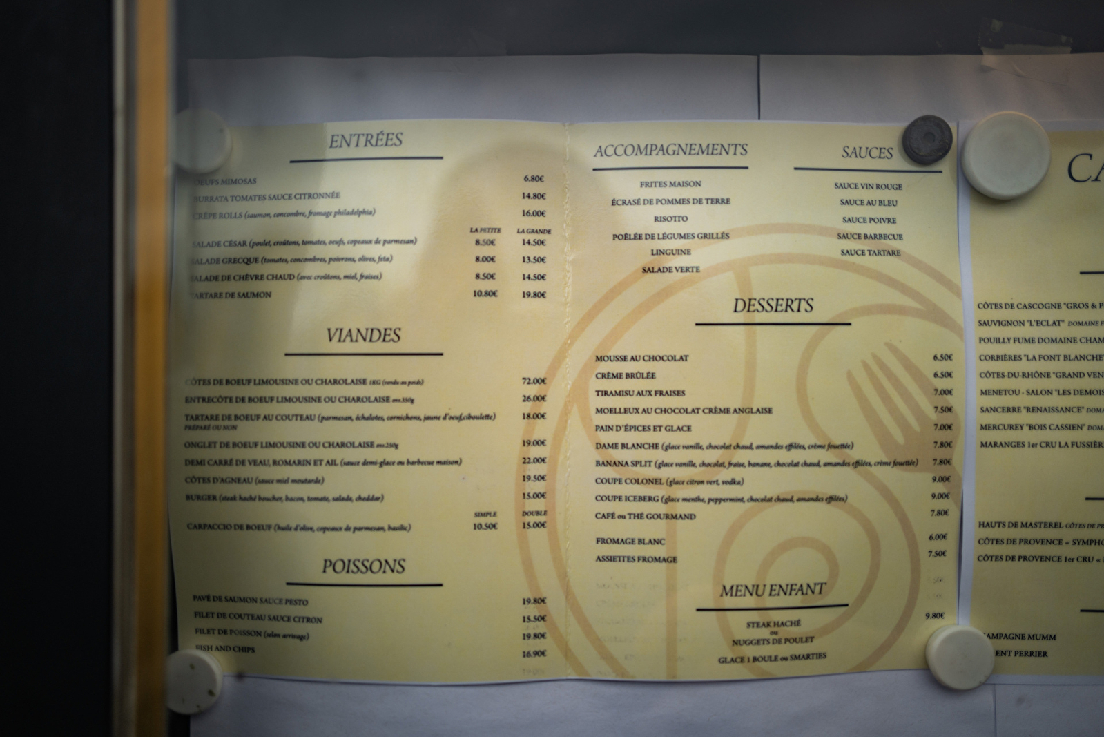Tarifs :- Menu adulte : Compris entre 30€ et 40€