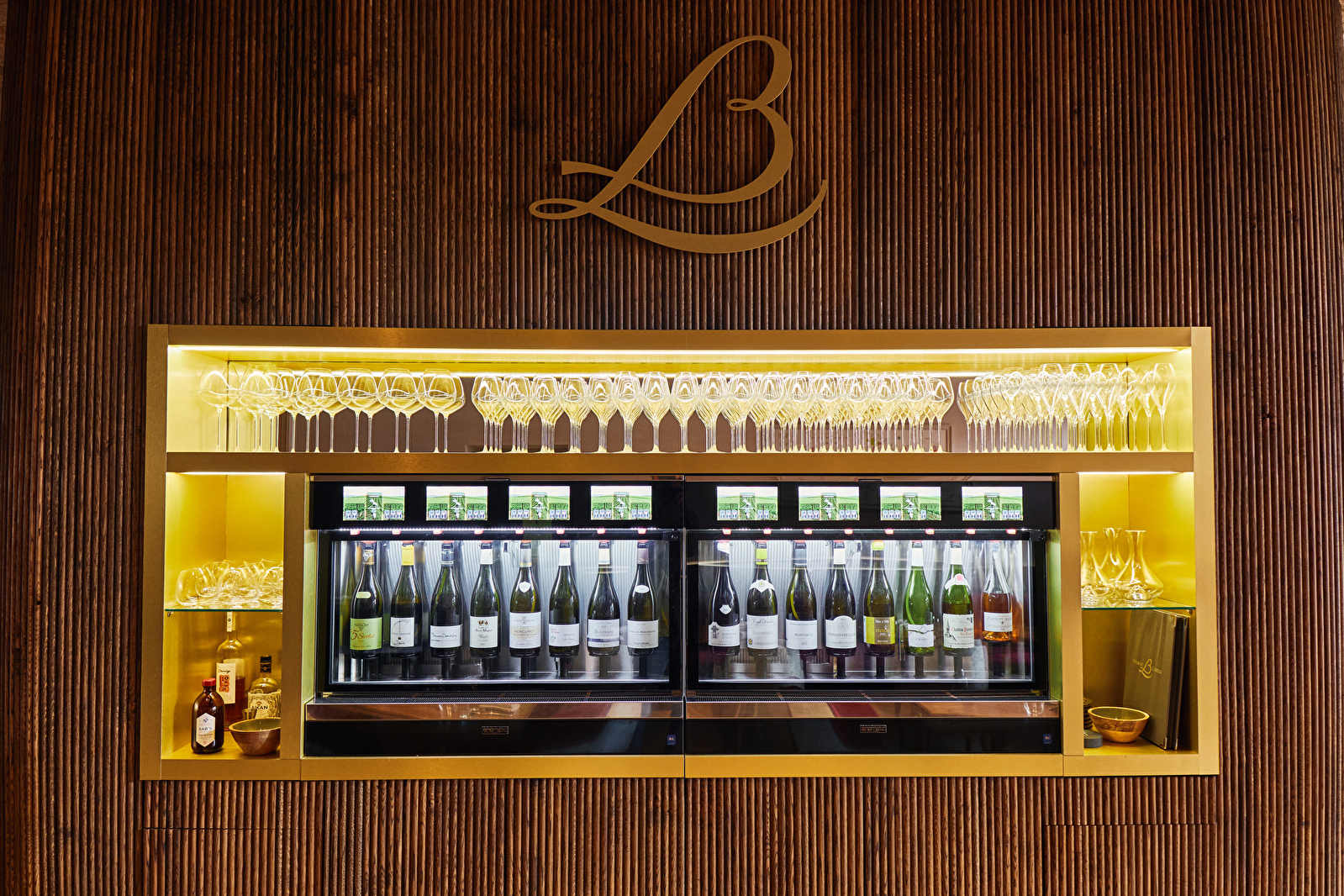 Quatre œnothèques lovées dans un écrin magistral de chêne, proposent jusqu’à 32 références de vins au verre, vous permettant de « Déguster la Bourgogne du verre à l’assiette », avec également les desserts réalisés d’après les recettes du Relais Bernard Loiseau.