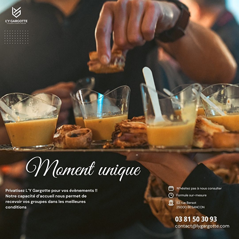 L'Y GARGOTTE, situé au cœur de Besançon, est un lieu chaleureux où chaque détail est pensé pour vous offrir une expérience culinaire unique.