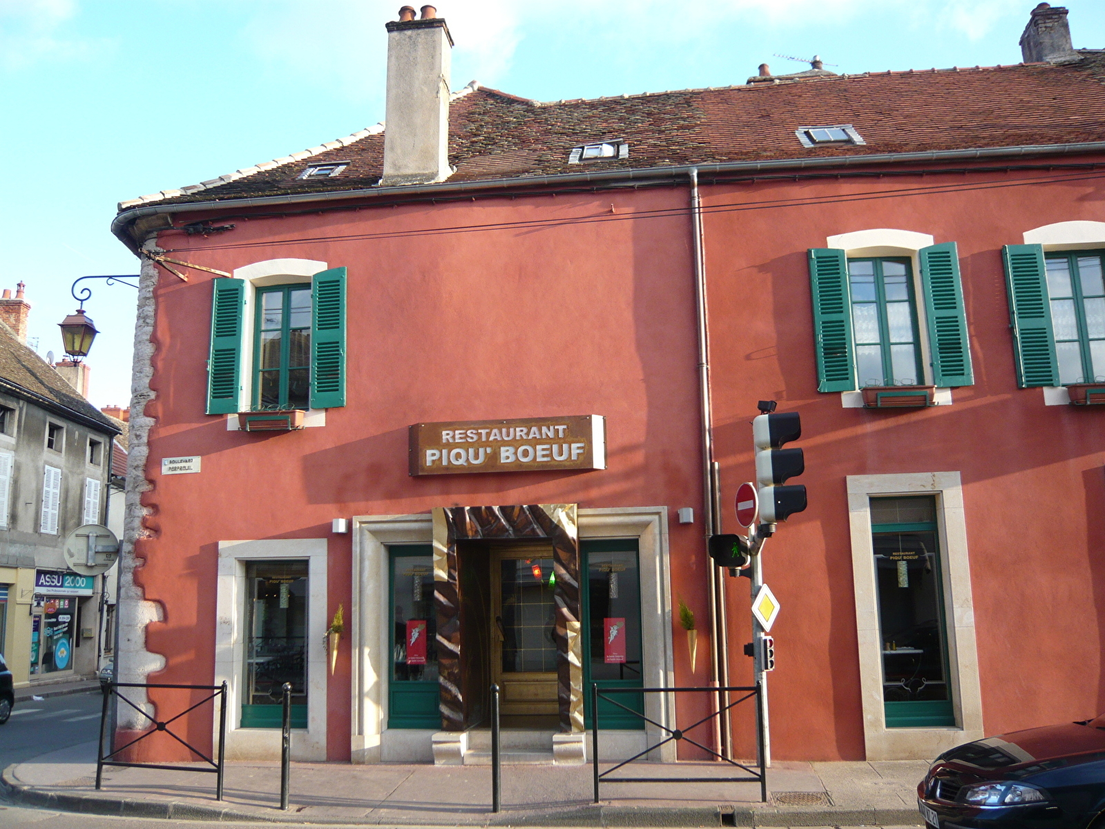 Damien, le chef, privilégie les filières courtes ; on savoure toujours au Piqu'Boeuf une viande Charolaise d'un éleveur bourguignon local, grillée sous vos yeux au feu de bois dans une cheminée monumentale (l'été : Grill au gaz de juin à août), mais aussi une cuisine raffinée à base de produits frais. Les nouveautés à l'ardoise sont mitonnées avec des produits de saison locaux.
