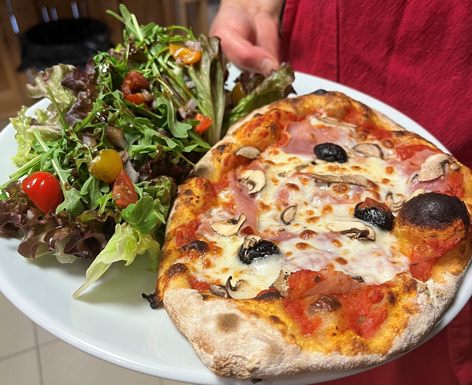 Les pizzas italiennes sont faites maison avec de bons produits frais.