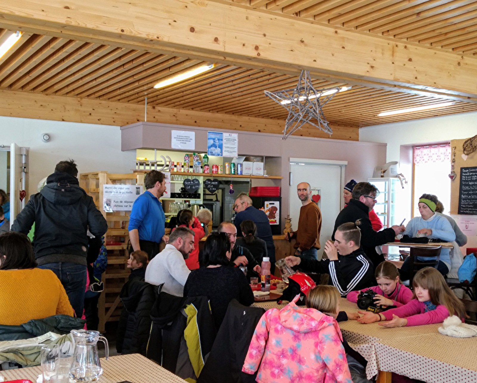 Plat du jour, spécialités locales à base de fromage (gaufre au comté, tartine jurassienne...), salades, et restauration rapide (paninis, hot-dogs...).