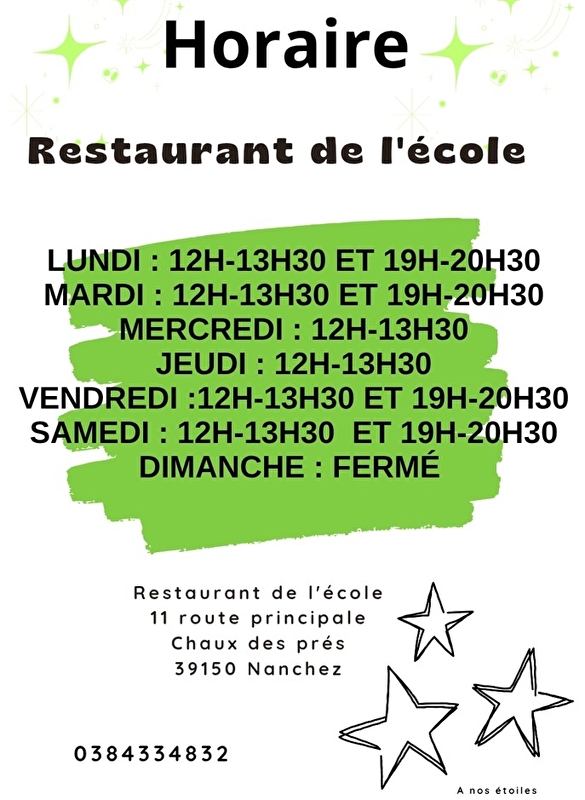 Du lundi au samedi de 12h à 13h30 + Vendredi & Samedi de 19h à 20h30.