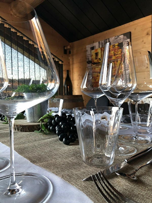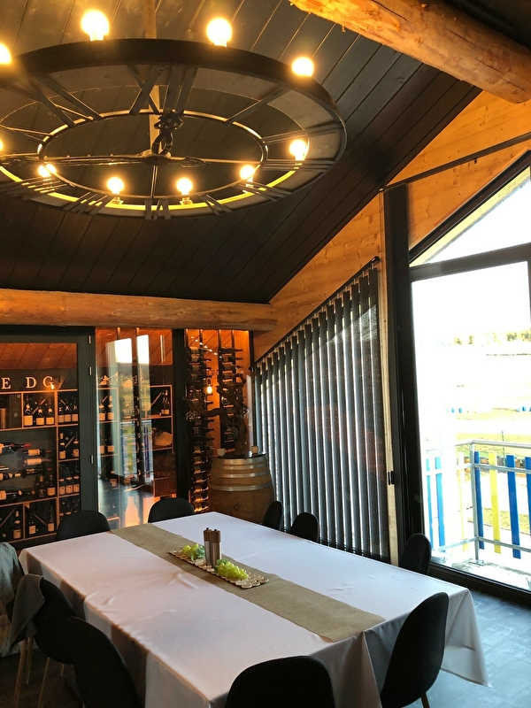 Cuisine traditionnelle et régionale. Salle de dégustation de vins, avec cave vitrée.