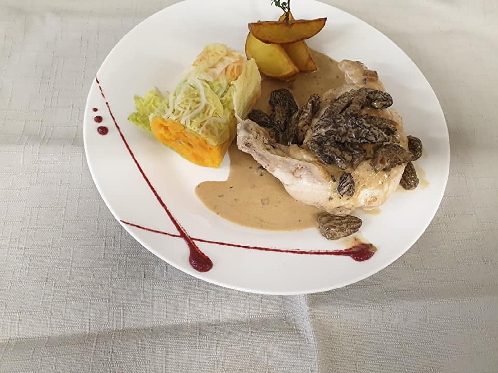 Spécialités : la croûte aux morilles, le Filet de perche, la truite gratinée au comté avec sauce Savagnin.