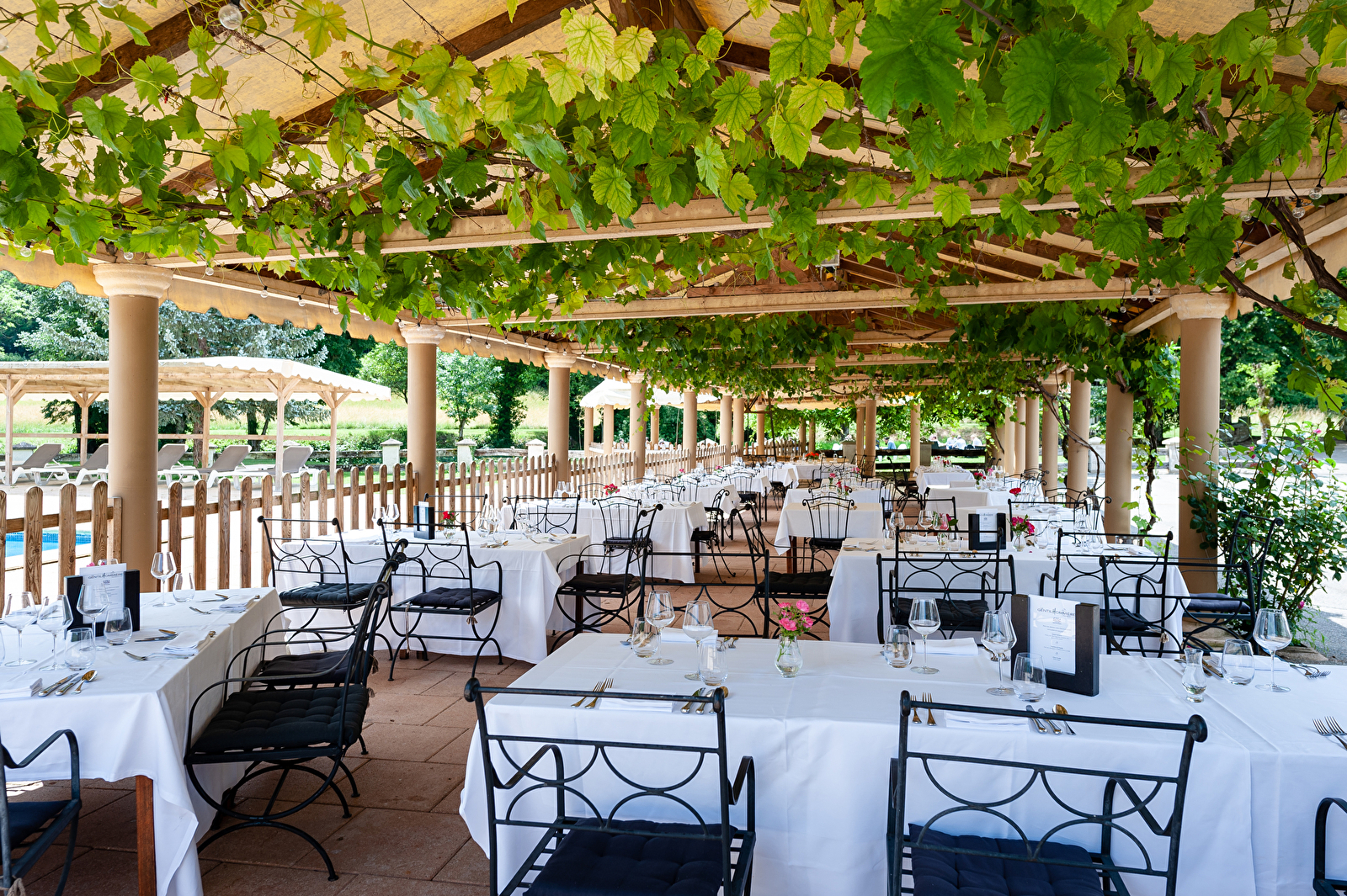 A la période estivale vous pourrez profiter de notre jolie terrasse ouverte sur le parc & la piscine.