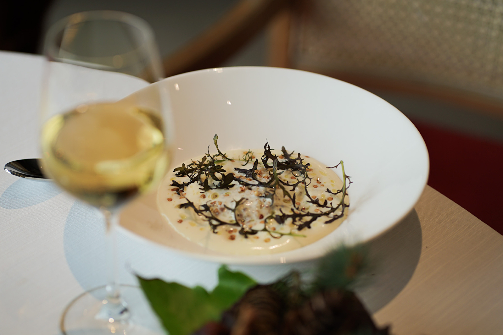 Des recettes entre ‘ferme & lac’, des baies des sous-bois, herbes folles et fermentations rencontrent les marqueurs bourguignons et les classiques de la cuisine française.
