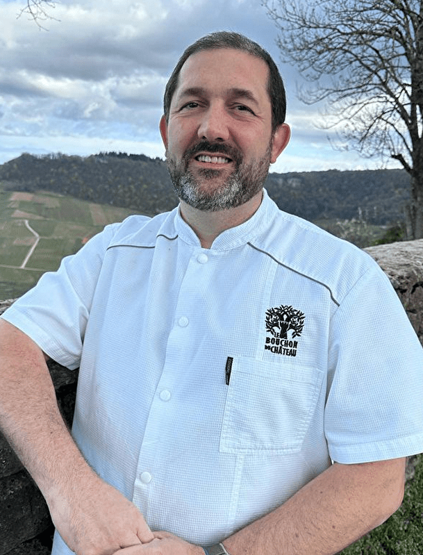 En saison, une terrasse s’ouvre en extérieur donnant sur le belvédère de Château-Chalon.