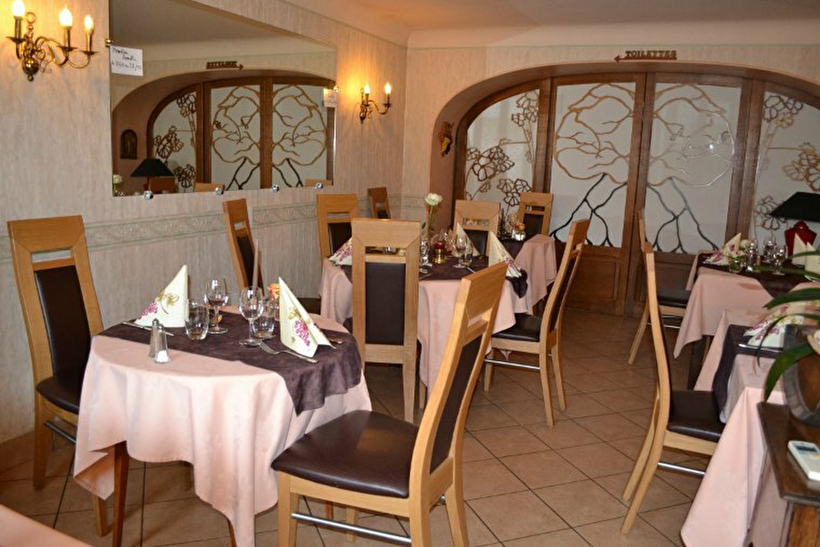 Trois salles de restaurant climatisées dont une petite salle de 18 couverts indépendante. Établissement agréable, confortable, fleuri. Service et cuisine soignés. Cuisine traditionnelle, régionale (œufs meurette, escargots, jambon du Morvan...) au gré des saisons (produits frais). Tarifs de menus différents les jours fériés.