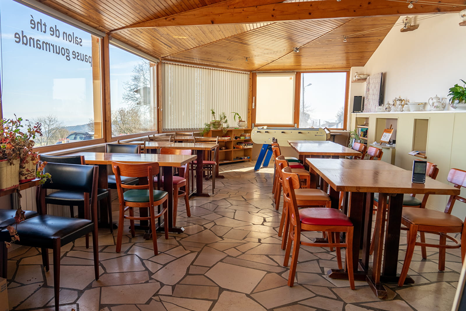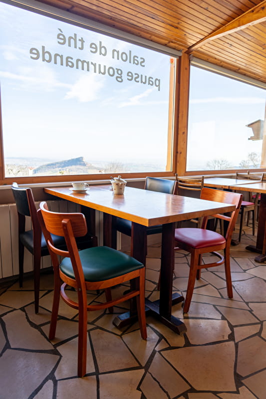 En terrasse ou en intérieur dans la salle panoramique, profitez de la vue en sirotant la boisson de votre choix et en dégustant l’une des bonnes pâtisseries de Marine et Nathalie !