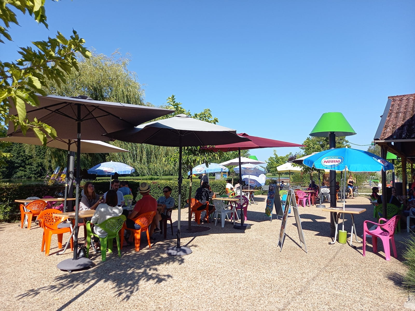 La guinguette du Stade Nautique est située dans une base de loisirs avec des activités de plein air, jeux pour enfants, mini-golf, tyrolienne, plage et embarcations.