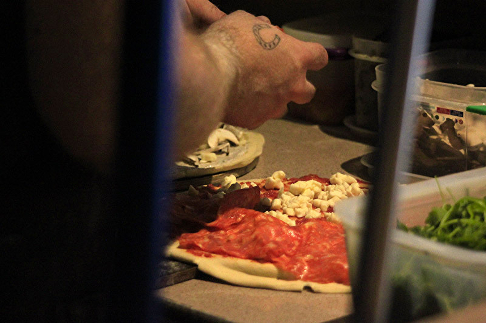 Pizzas au feu de bois, plats du jour et desserts maison.