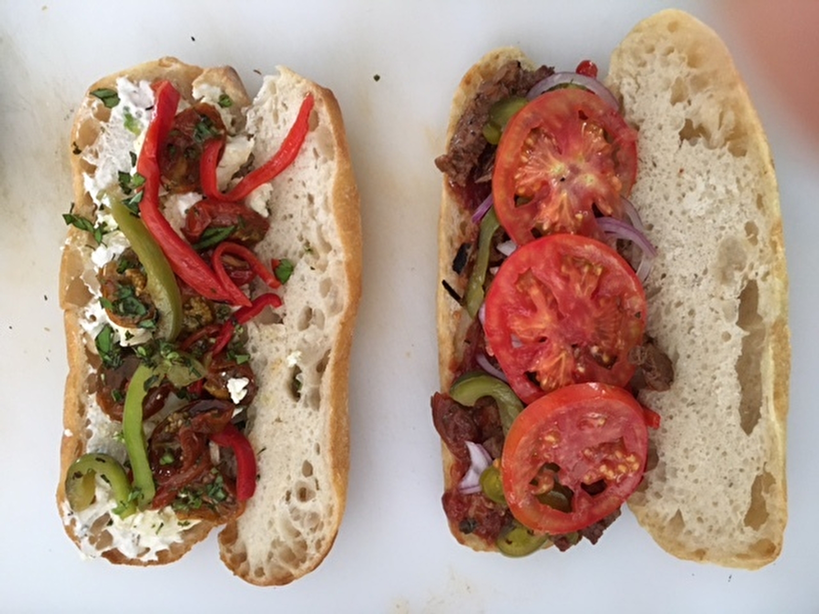Petite restauration et mini boutique. Nous préparons des sandwichs toastés cuisinés avec des viandes locales cuites en cuisson lente au four barbecue smoker et des sandwichs végétariens au fromage et légumes marinés. Le tout est servit avec des bières et vins locaux, softs, thés, cafés, cookies et desserts maisons.