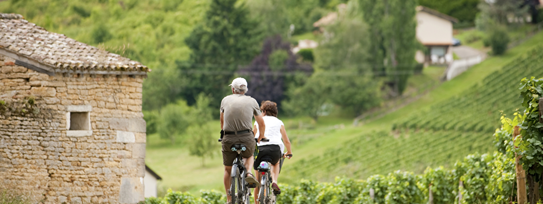 Velozelay fait rimer vélo électrique avec patrimoine historique et gastronomique : après quelques kilomètres près de la Colline Éternelle, descendez de votre vélo pour pousser la porte d’un vigneron ou tout simplement pour passer à table chez un restaurateur du coin.
