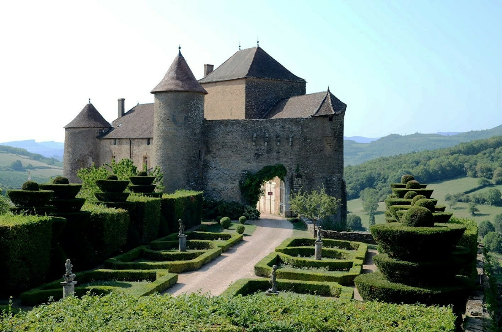 Construit du XI° au XV° siècle autour de sa chapelle carolingienne, ce château conserve tout son système défensif, treize tours dont deux donjons, son impressionnant châtelet d'entrée et ses salles médiévales. C'est ainsi la plus importante et la mieux conservée des forteresses de Bourgogne. Le château comprend trois enceintes. Chacune d'elle abrite des jardins divers, vergers, potagers, jardin à la française avec ses buis, ses statues, ses charmilles et ses grands ifs taillés en pions d'échec.