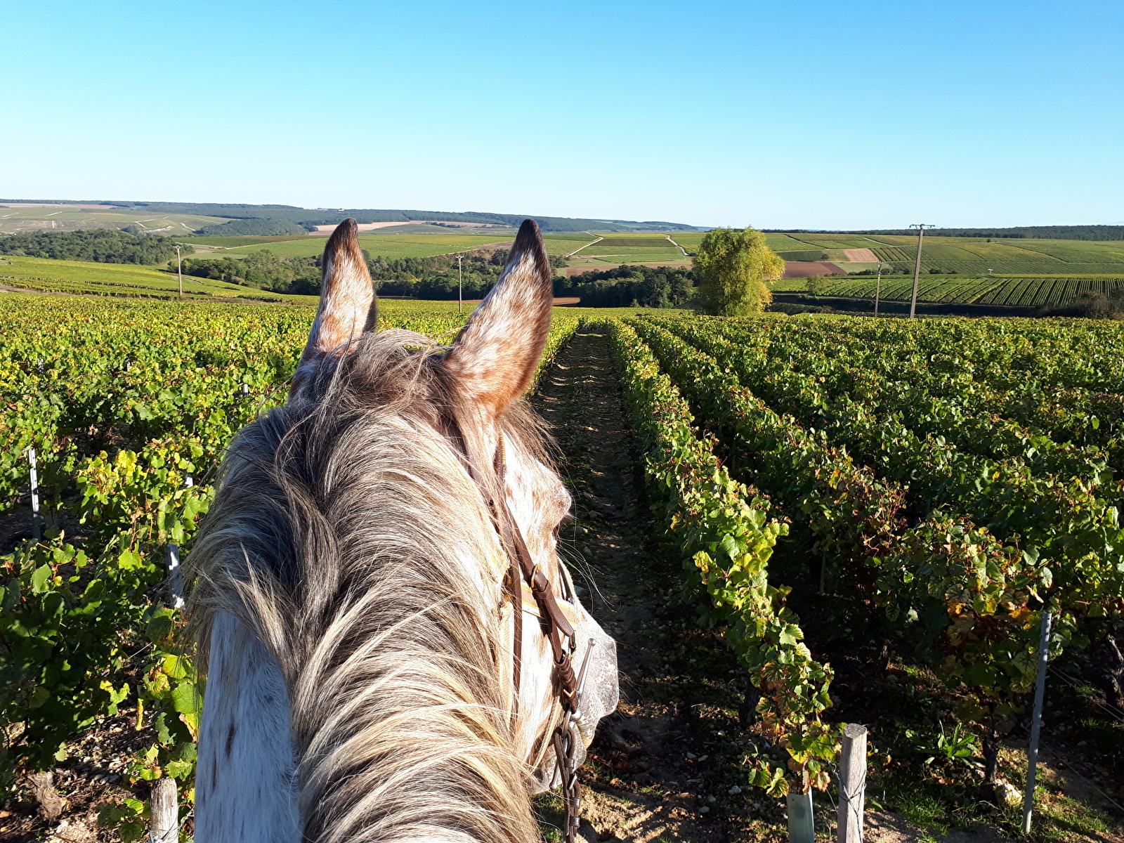 Balades à cheval dans les vignes du Chablisien Balades à l'heure, demi-journée ou journée Ouvert à tous les niveaux Possibilité de dégustation de Chablis