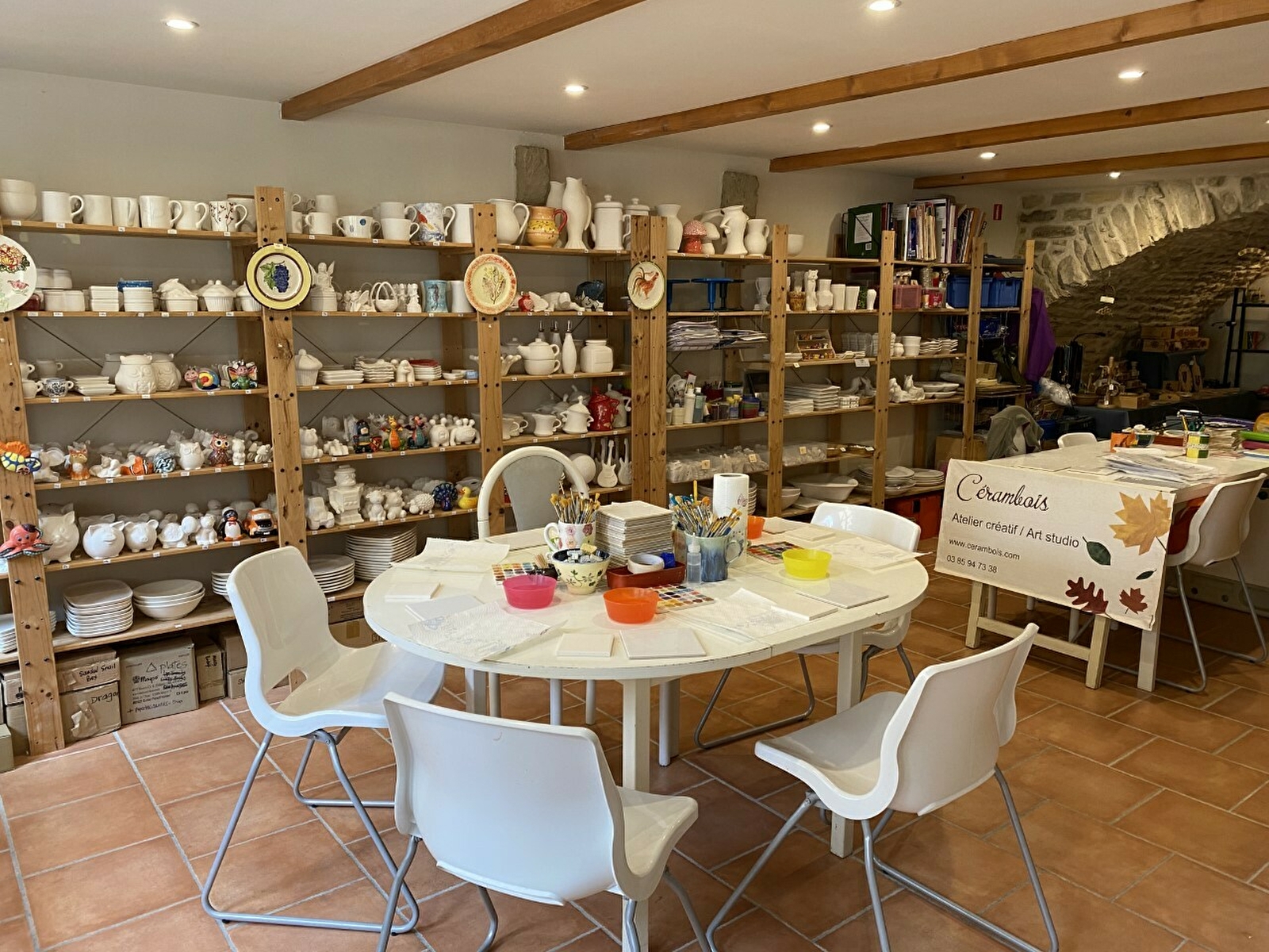 Sue ROBINSON vous propose un atelier artistique et créatif, ouvert à tous, où vous réalisez votre propre projet artistique sur des objets en céramique ou en bois.