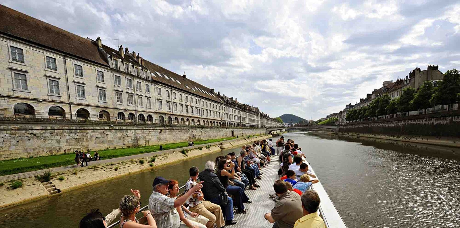 La croisière promenade dévoile Besançon autrement. Au cours de votre itinéraire, vous passerez deux écluses et traverserez un canal souterrain long de près de 380 mètres, directement creusé sous la Citadelle. Cette dernière et les fortifications de Vauban, classées sur la Liste du patrimoine mondial de l’Unesco, apparaîtront sous un tout nouvel angle. Outre l’intervention des membres de l’équipage, vous pourrez bénéficier de commentaires audio-scénarisés. Réalisés avec l’aide de professionnels de la scène et du son, ces points de vue de César et de Victor Hugo vous racontent de façon bien vivante la grande histoire de Besançon. Selon la formule choisie, il y a possibilité d’apprécier la visite avec un bon repas à déguster dans le restaurant du bateau.