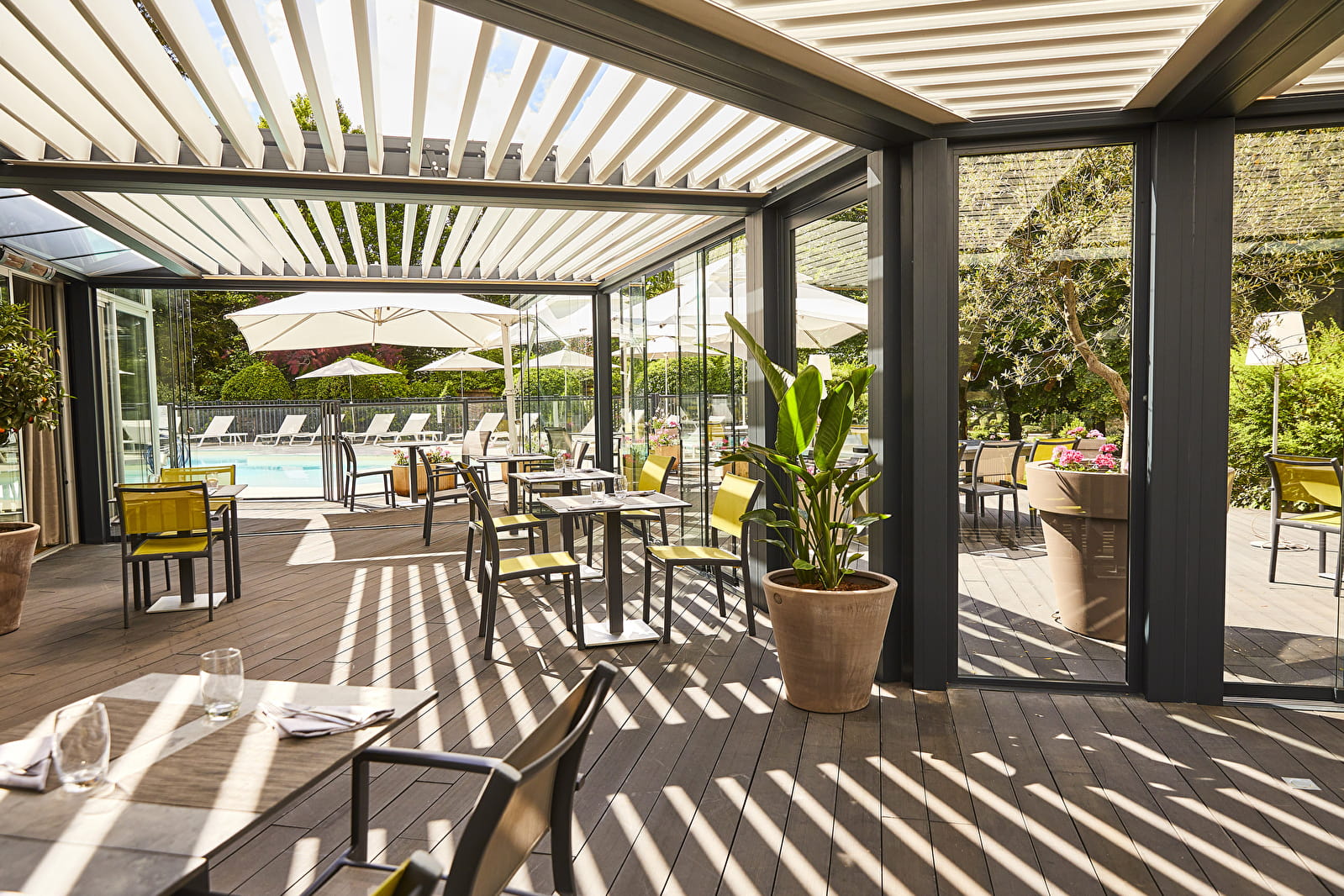 Aux beaux jours, profitez de notre pergola et notre terrasse pour vous accorder une parenthèse gourmande en famille ou entre amis.