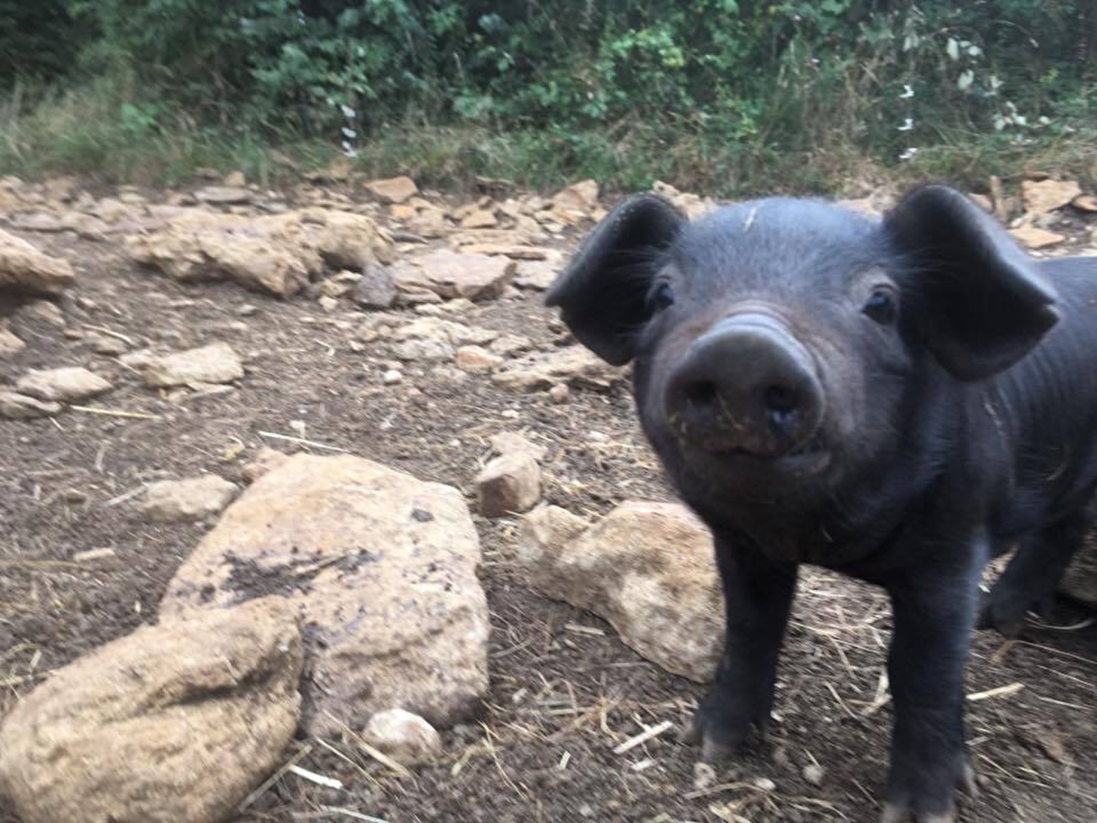 Le camping se situe au cœur de la petite montagne sur une exploitation agricole, la ferme de l’Âne Eria. Sébastien élève des moutons bizet, des porcs au cul noir et des agneaux.