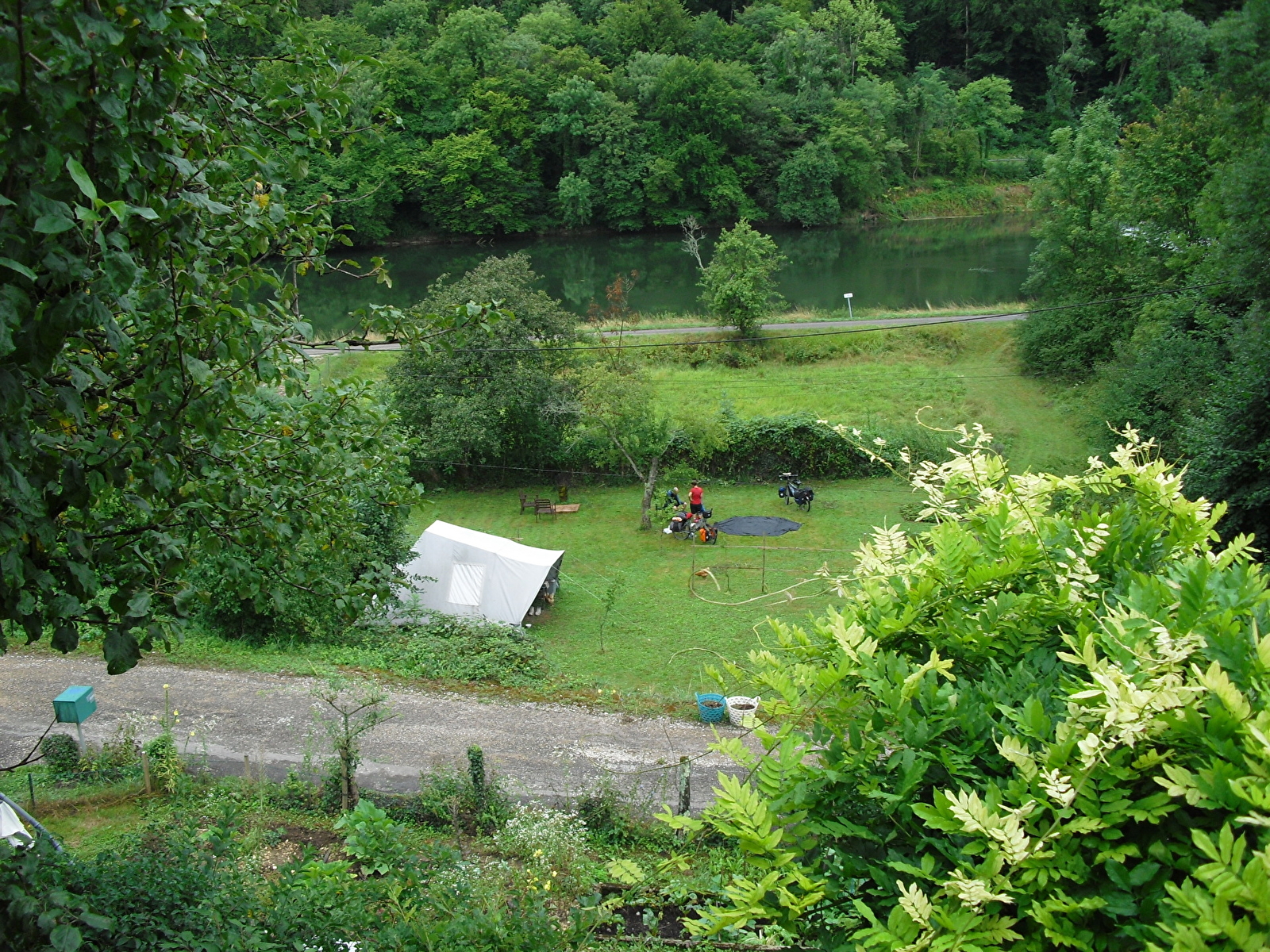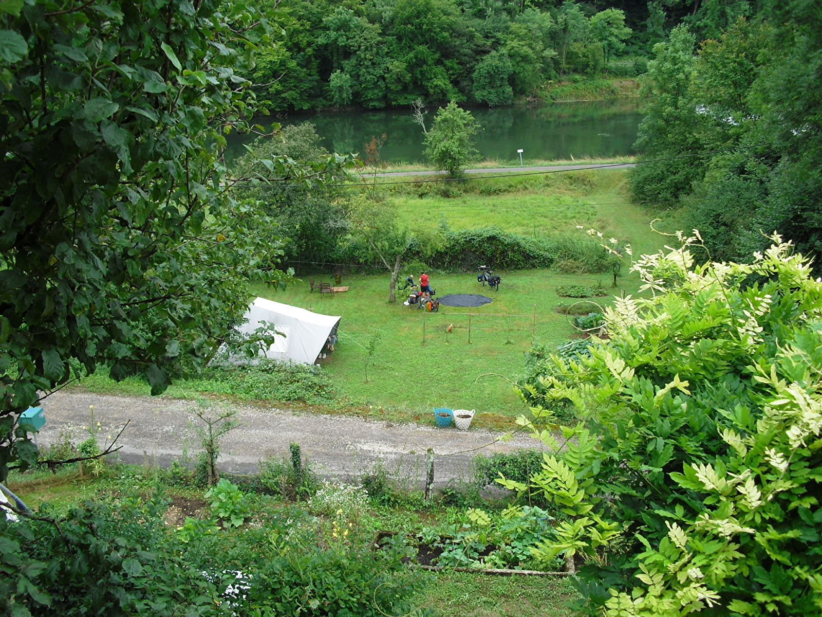 Camping chez l'habitant au bord du Doubs et véloroute. Sanitaire dans la maison. toilette sèche sur le terrain du camping.