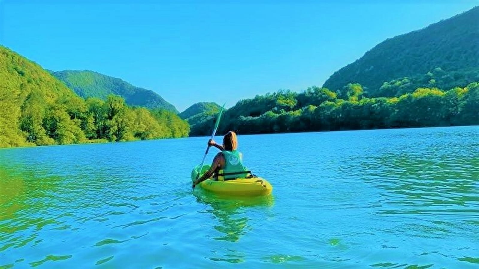 Notre Parcours Découverte en Canoë commence à Thoirette, passe par le Lac de Conflans et son château, descend une partie des gorges de l'Ain dans un site magnifique, verdoyant, sauvage, surprenant et calme. Avec des arrêts possibles dans la Valouse et aux Marmites, endroits idéals pour pique-nique et rafraîchissement, le parcours se termine au débarcadère de Corveissiat. La descente varie de 6 à 9 km selon si on rentre ou pas dans le Lac et si l'on remonte l'embouchure de la Valouse ou pas. La navette retour est programmée 3h30 après l'heure de RDV de départ.