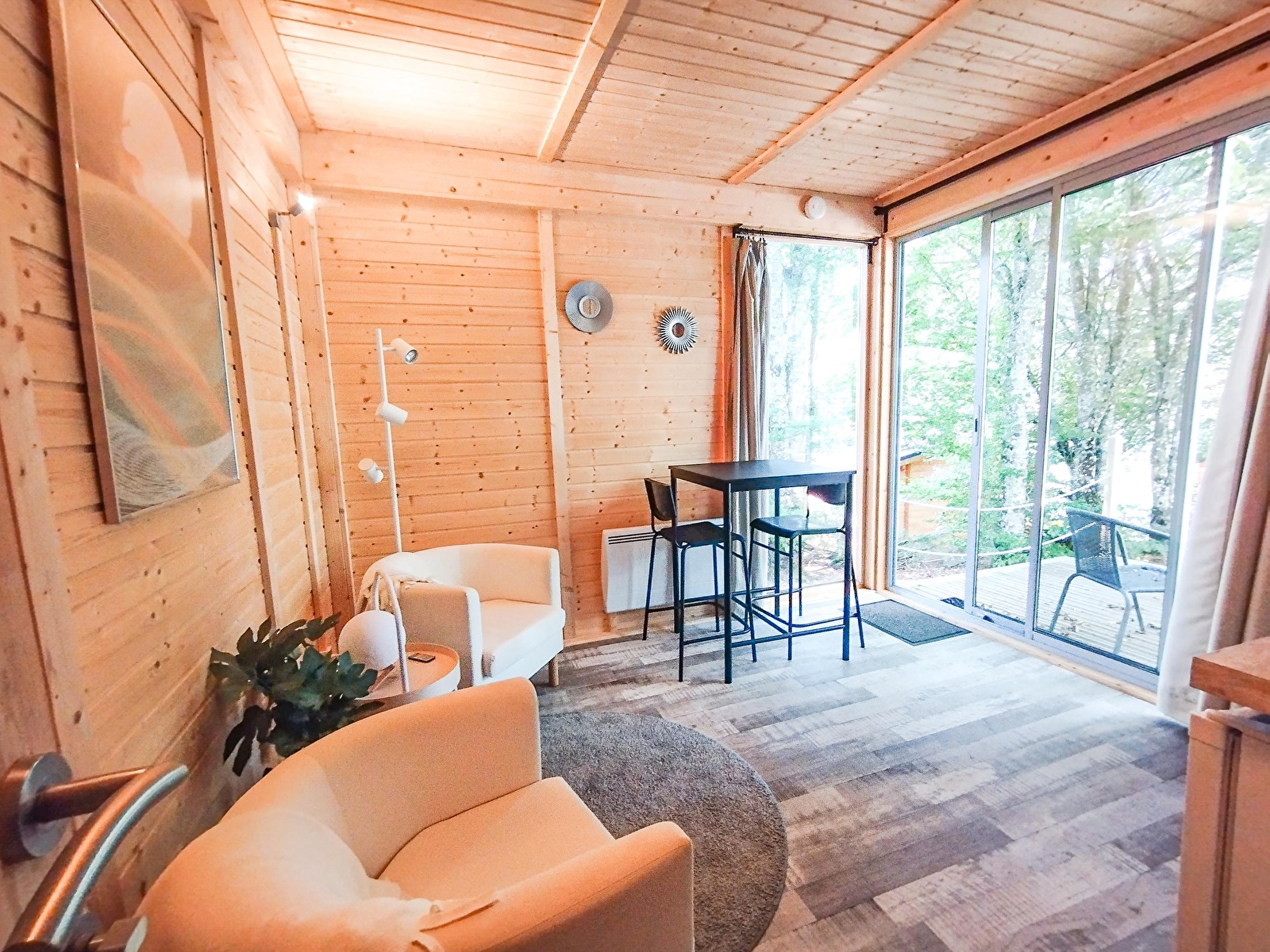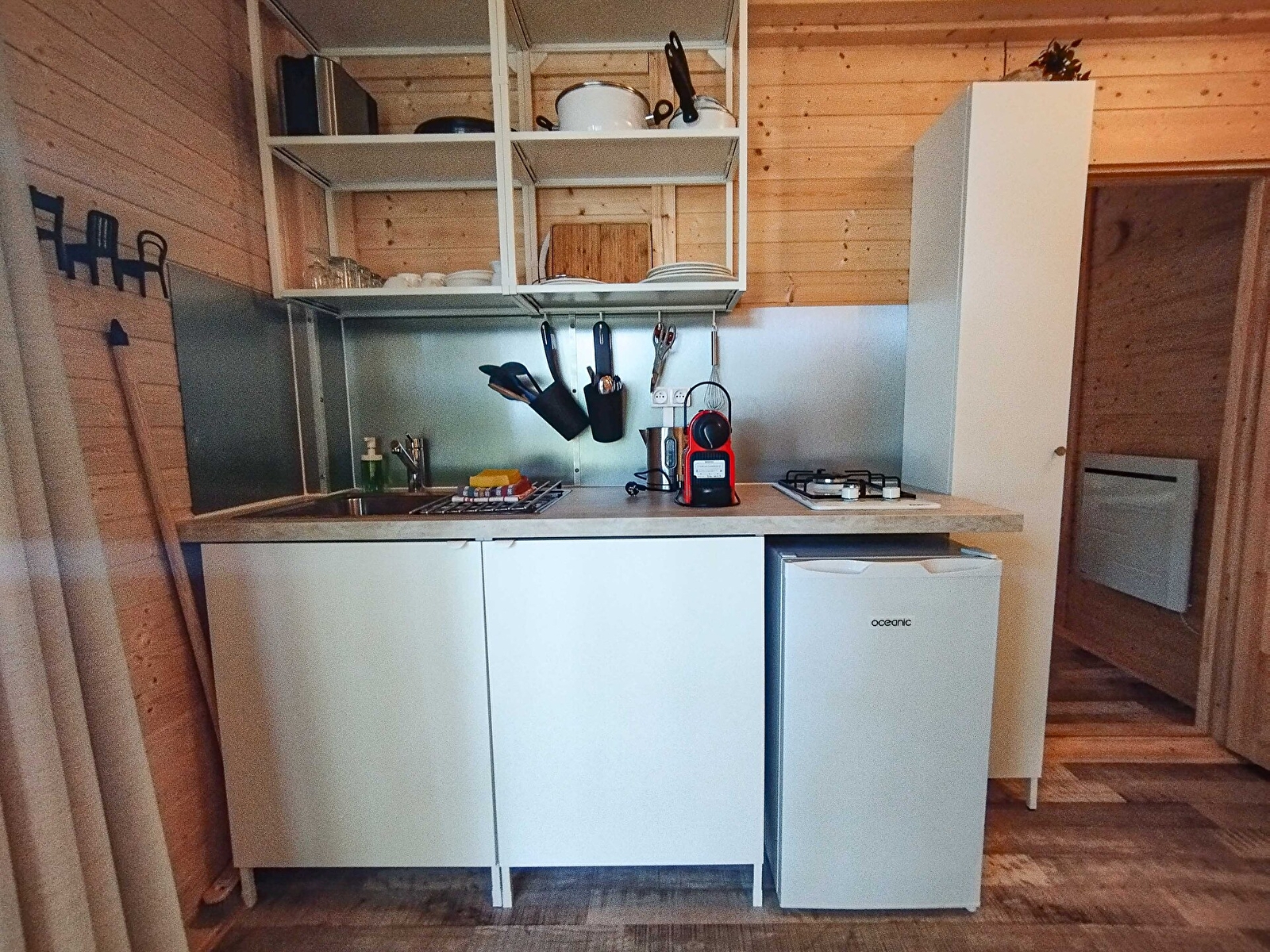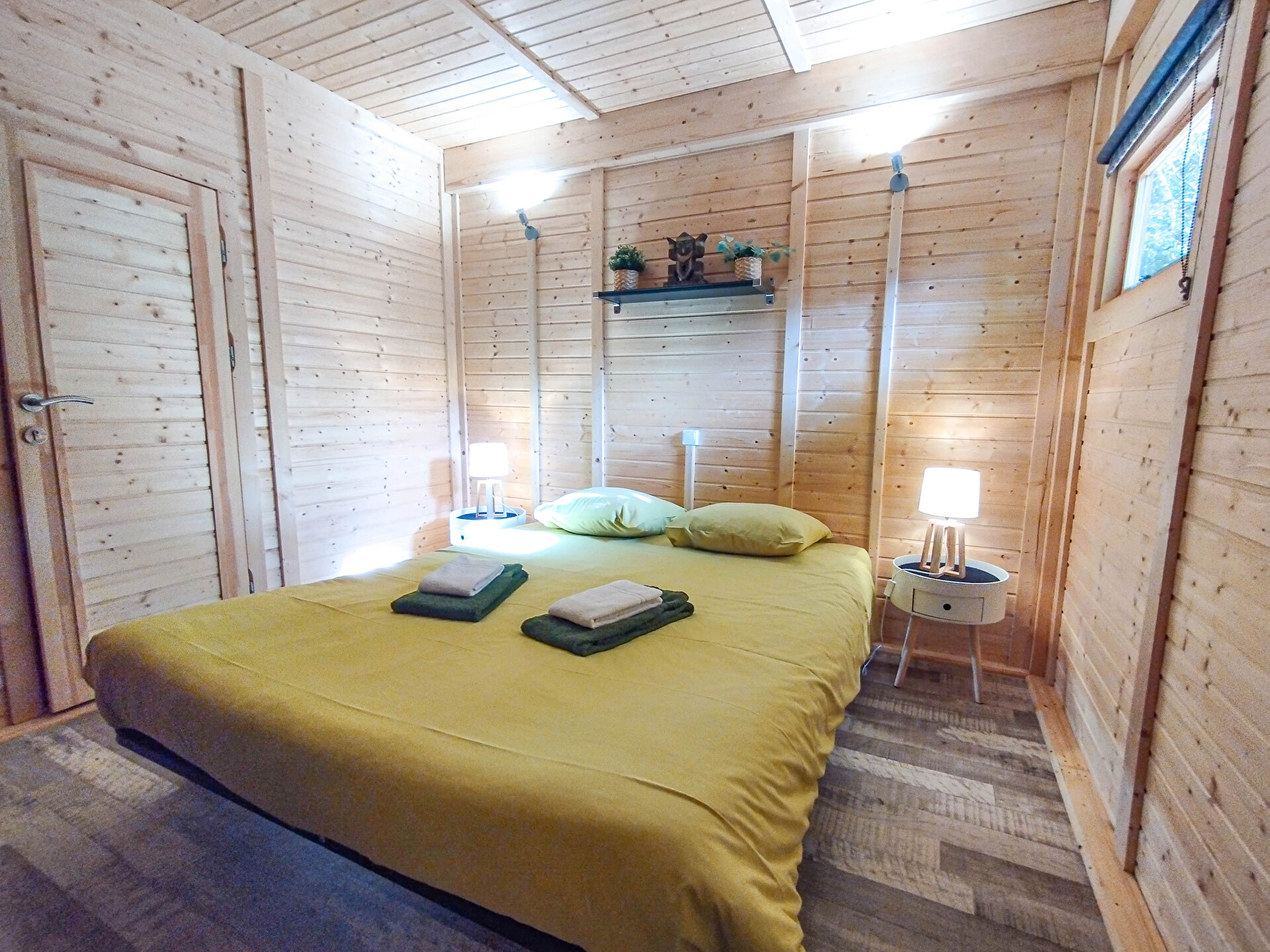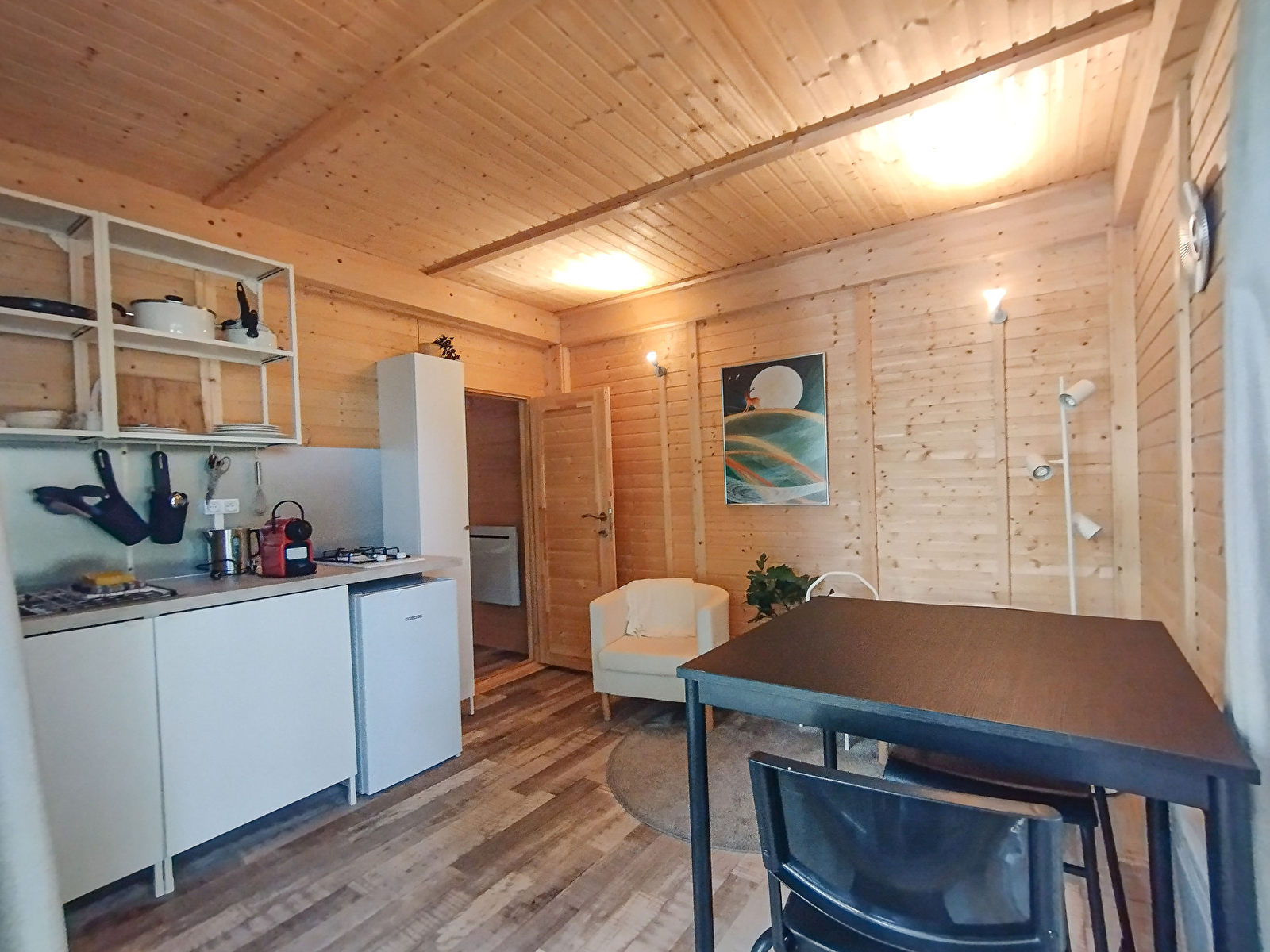 Chalet moderne et cosy exclusivement pour séjour en solo ou en couple. Toit plat et tout en bois. Jolie salle de bain et chambre romantique. Bureau pour télétravail. Avec petite terrasse vue lac pour l’apéritif et jardin pour la sieste sous le tau. Ombragé en été. Une décoration douce « au clair de la lune ».